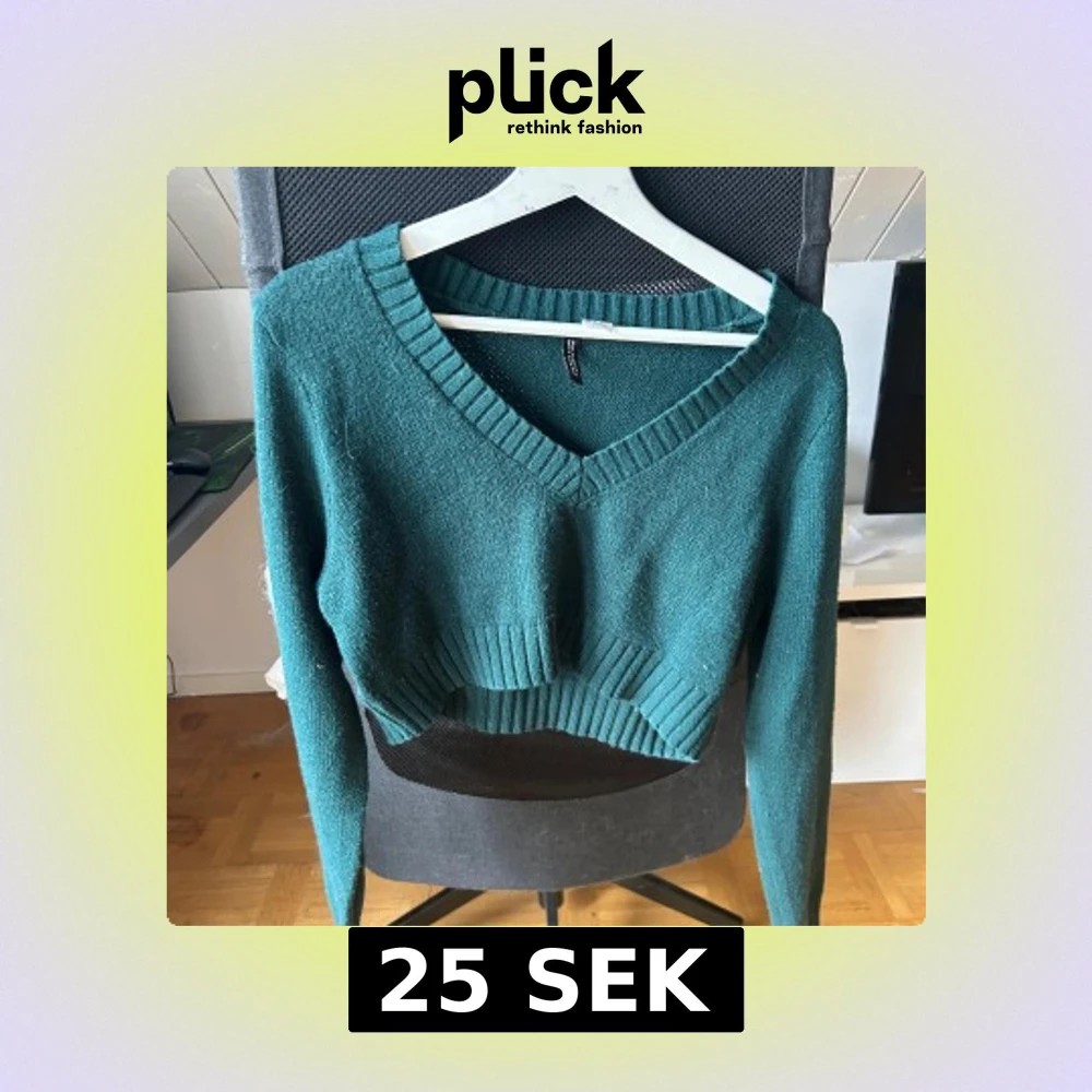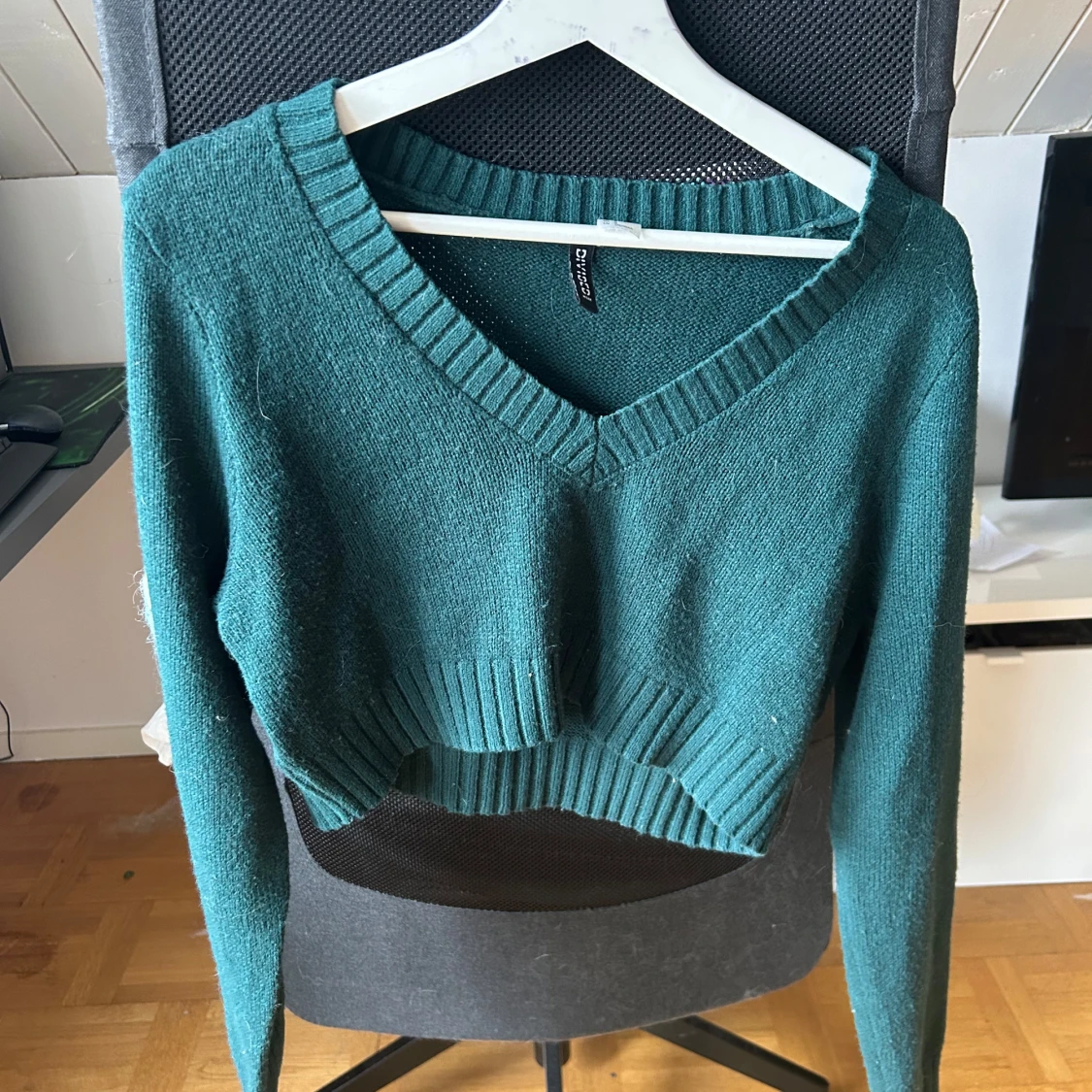 Säljer en mörkgrön croppad stickad tröja från H&M i superbra kvalité.