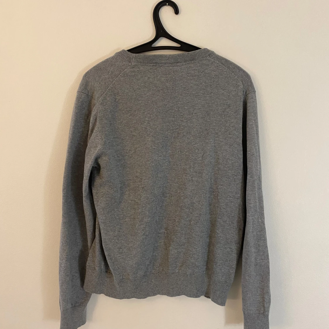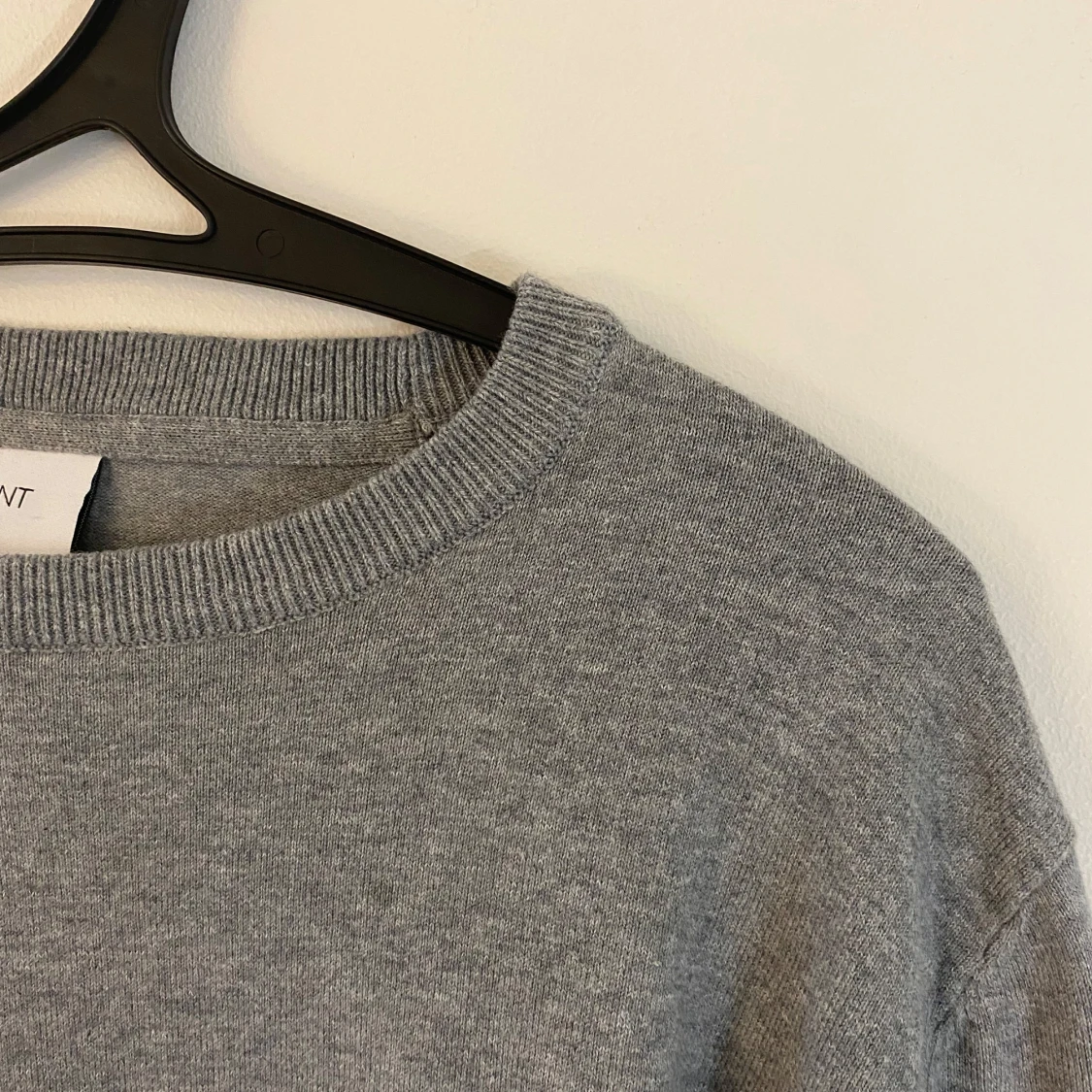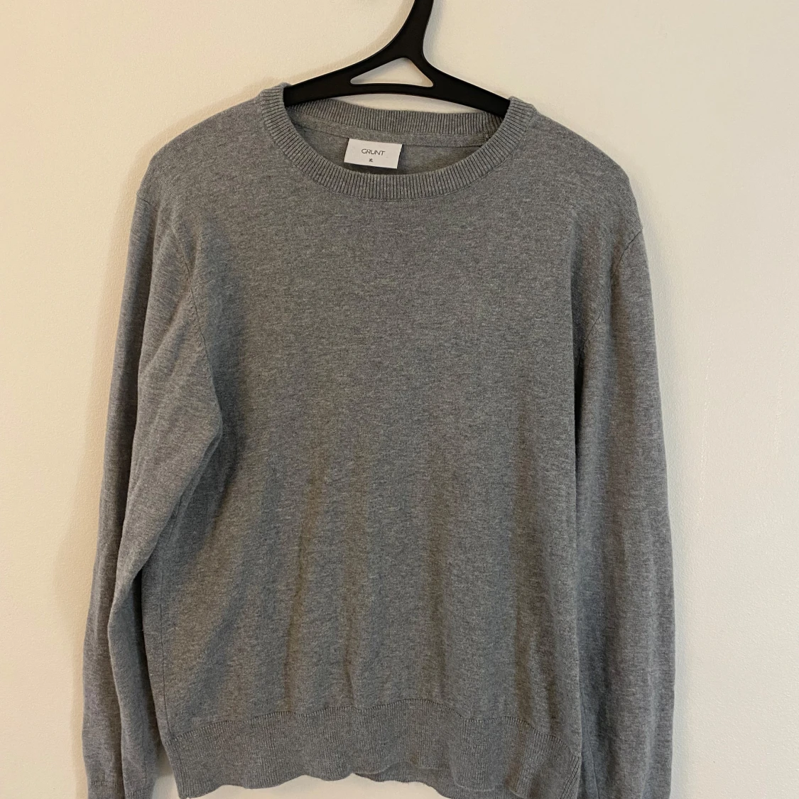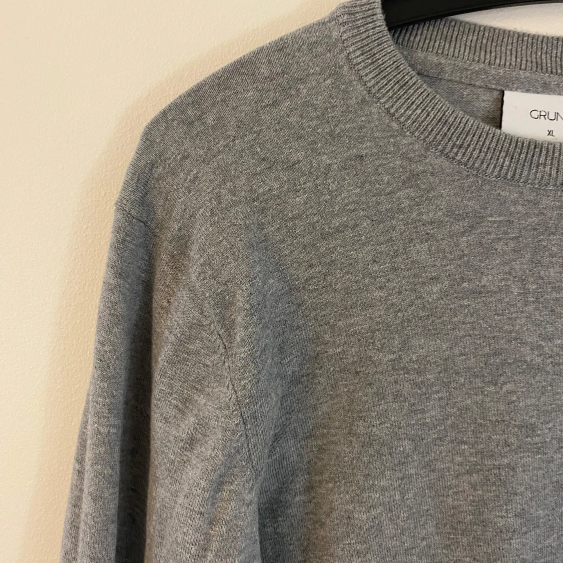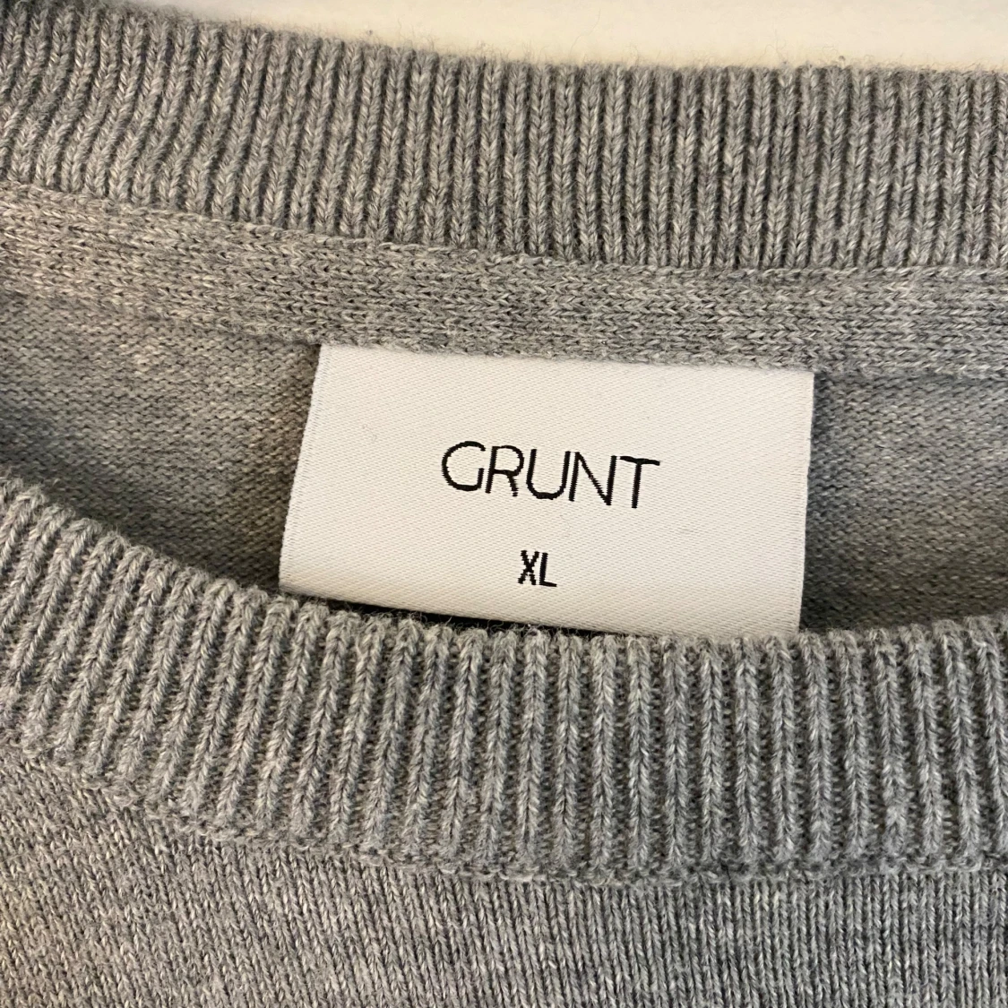 En enkel och stilren grå stickad tröja från Grunt i storlek XL i barnstorlek. Den passar för personer som är mellan 165-172 cm långa ungefär. Tröjan har rund halsringning, ribbade muddar och är långärmad. Perfekt för lager-på-lager och passar till många olika outfits.