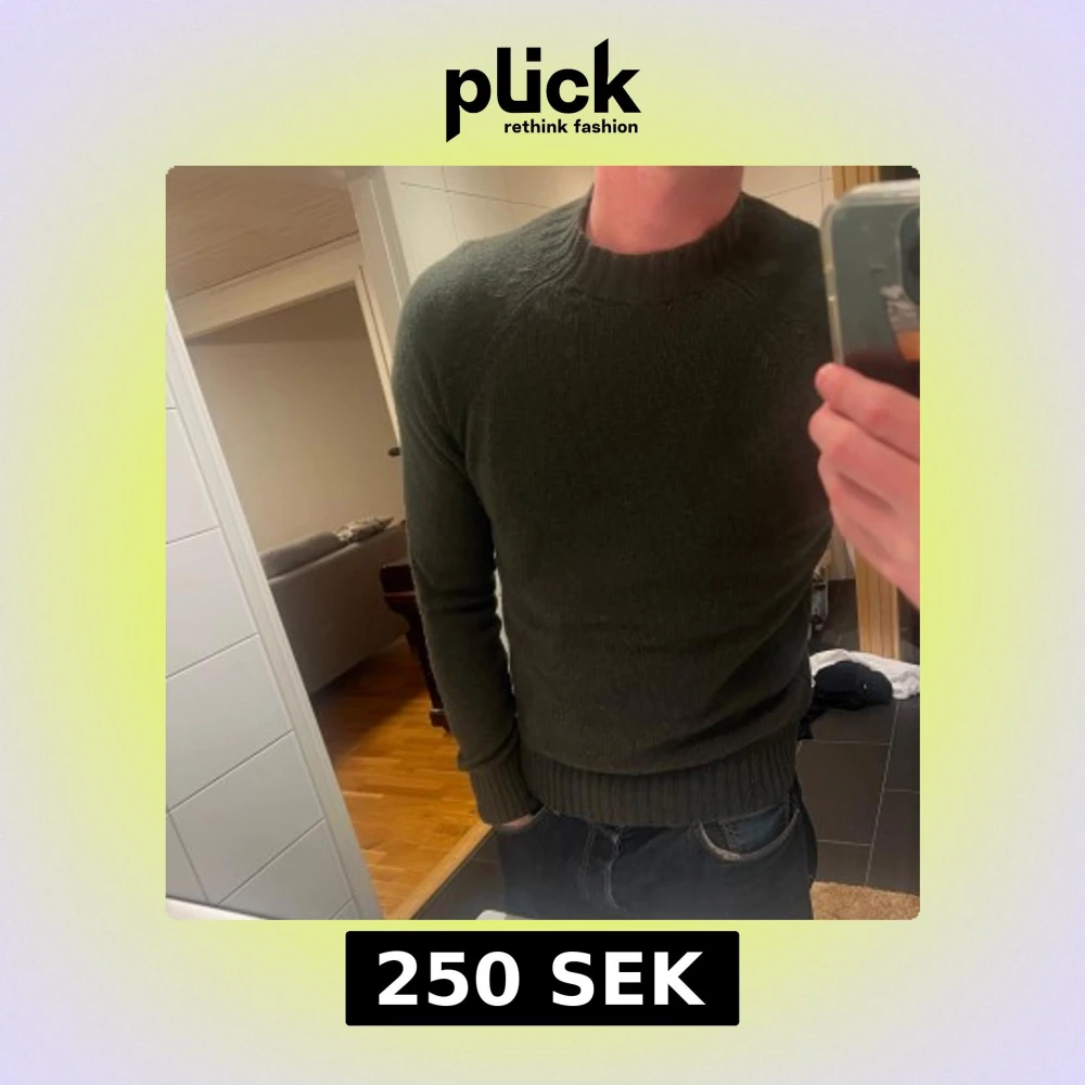 Säljer en enkel och stilren mörkgrön stickad tröja med rund halsringning och ribbade muddar. Perfekt för lager-på-lager och funkar lika bra till jeans som till chinos. Långärmad och mjuk, passar dig som gillar klassisk och clean stil. Storleken står M, men är mer åt S hållet enligt mig.