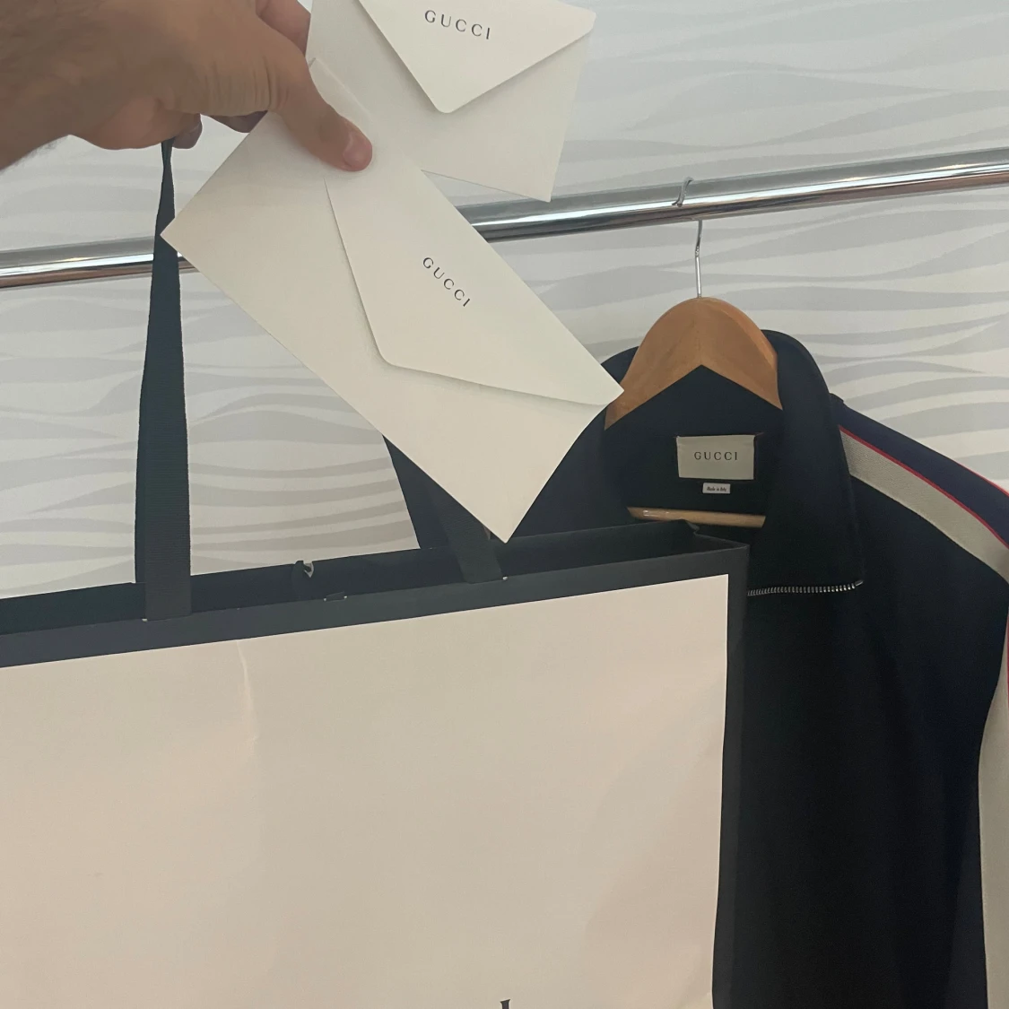 Zip upp kofta, Kommer med kuvären och original paket från Gucci, KOFTAN HAR INGA SKADOR ELLER FLÄCKAR. Nypris: 15500kr