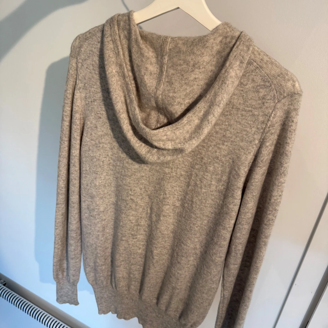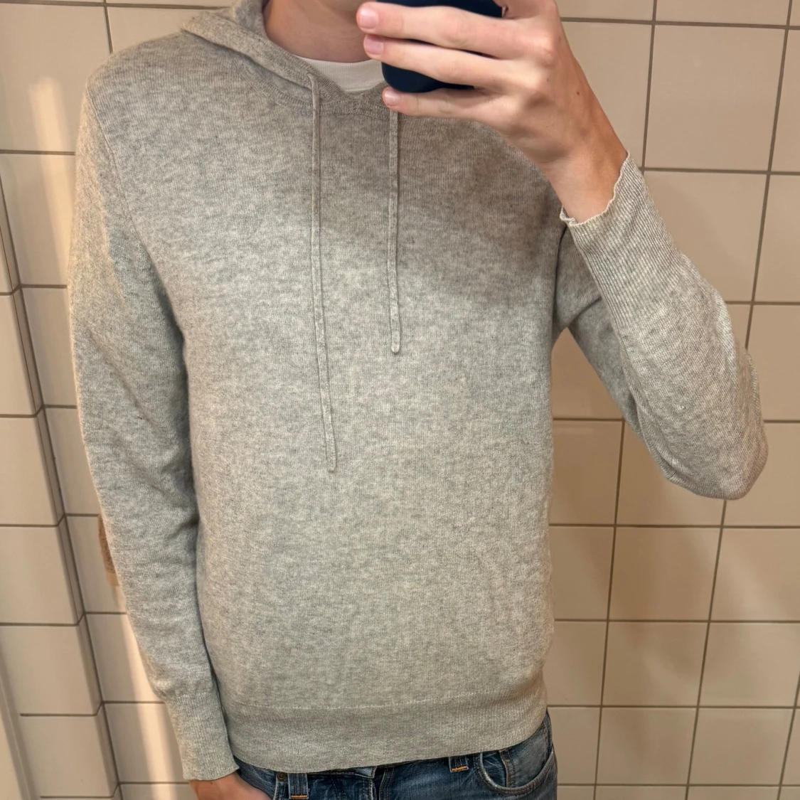 Supermjuk och lyxig grå hoodie från Soft Goat i 100% kashmir. Skicket är bra förutom att den har ett lagat hål i ena armen se bild 5. Nypris ligger på 3600kr mittpris 1200 pga av de lagde hålet. Bara att skriva vid funderingar mvh Liam!