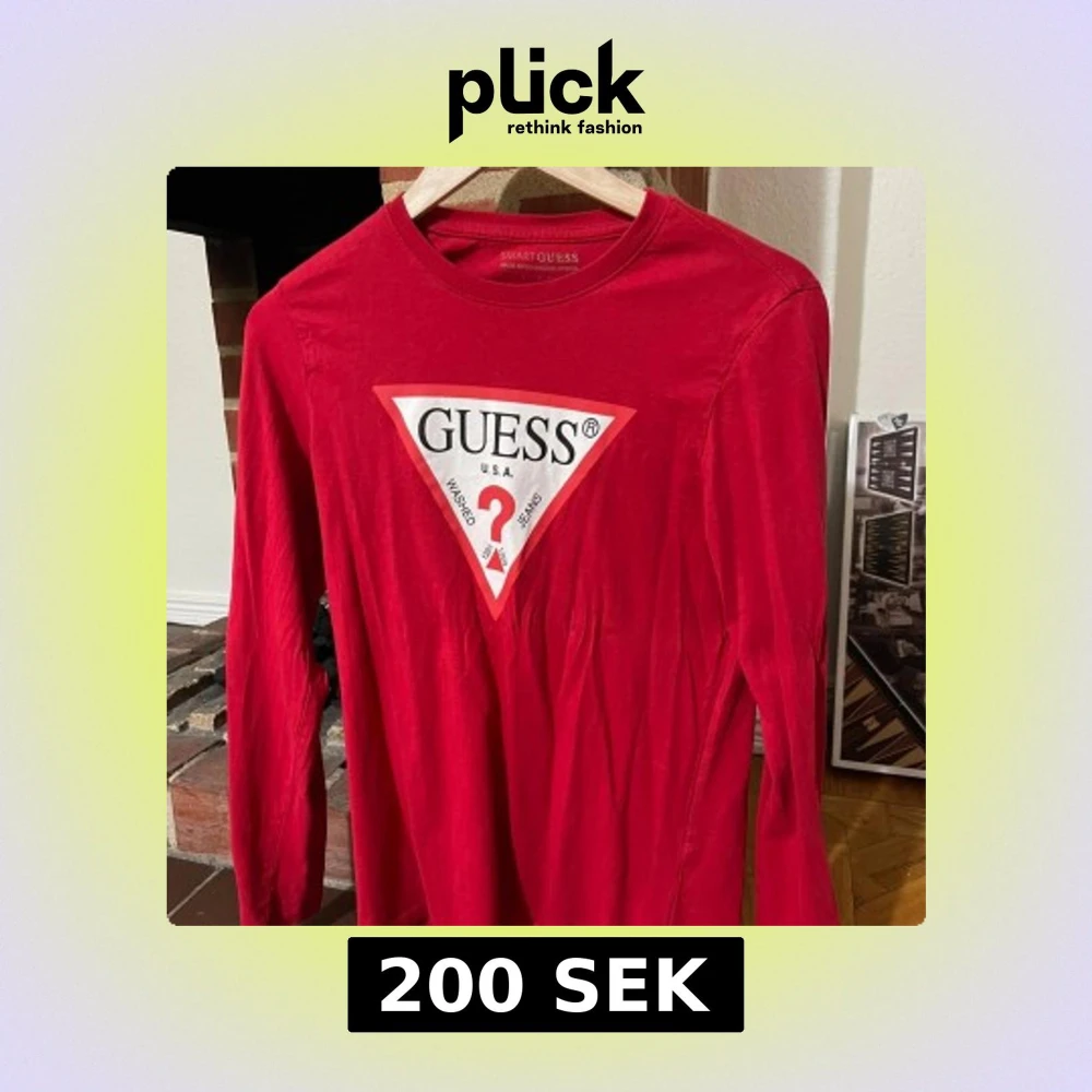 Snygg röd långärmad tröja från Guess med det klassiska stora trekantsloggan framtill. Tröjan är i mjuk bomull och har en rund halsringning. Perfekt för dig som gillar streetstyle och vill sticka ut med en ikonisk look.