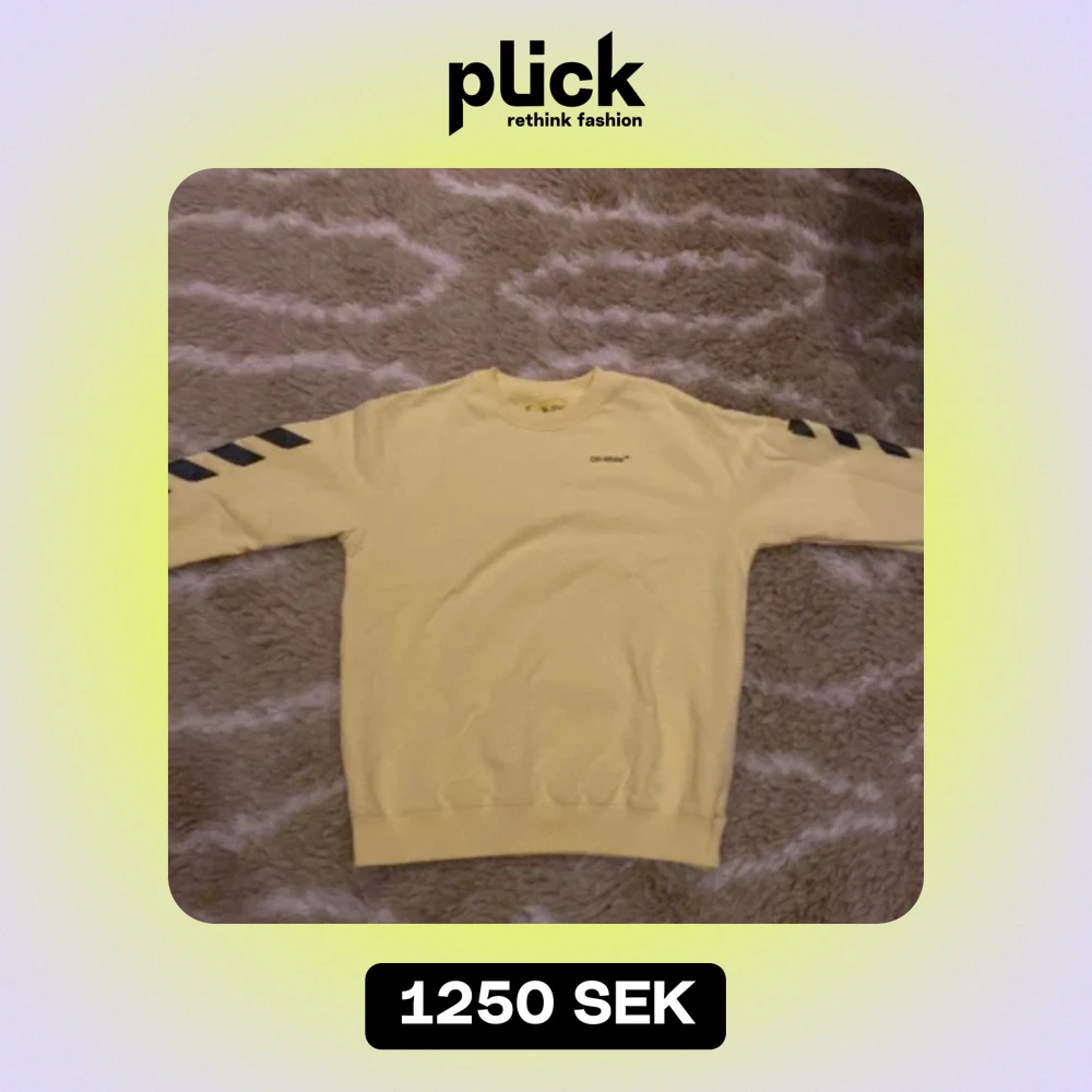 Säljer en supercool gul tröja från Off-White. Den har långa ärmar med svarta diagonala ränder och ett stort svart tryck på ryggen. Perfekt för att sticka ut i mängden! Tröjan är i bra skick och passar perfekt för både vardag och fest.