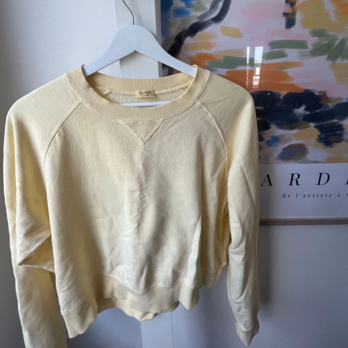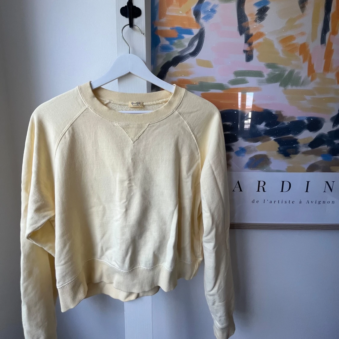 Säljer en mysig gul bomullströja. Den är perfekt för både vår och höst med sin sköna och mjuka känsla. Tröjan har långa ärmar och en normal passform. Den är i bra skick och redo för en ny ägare!