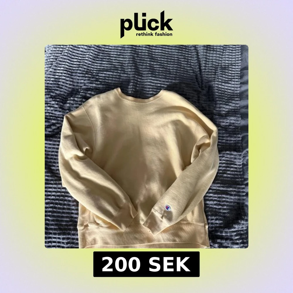 Ljusgul Vintage Champion Sweatshirt i storlek L. Köpt secondhand men har själv knappt använt den.