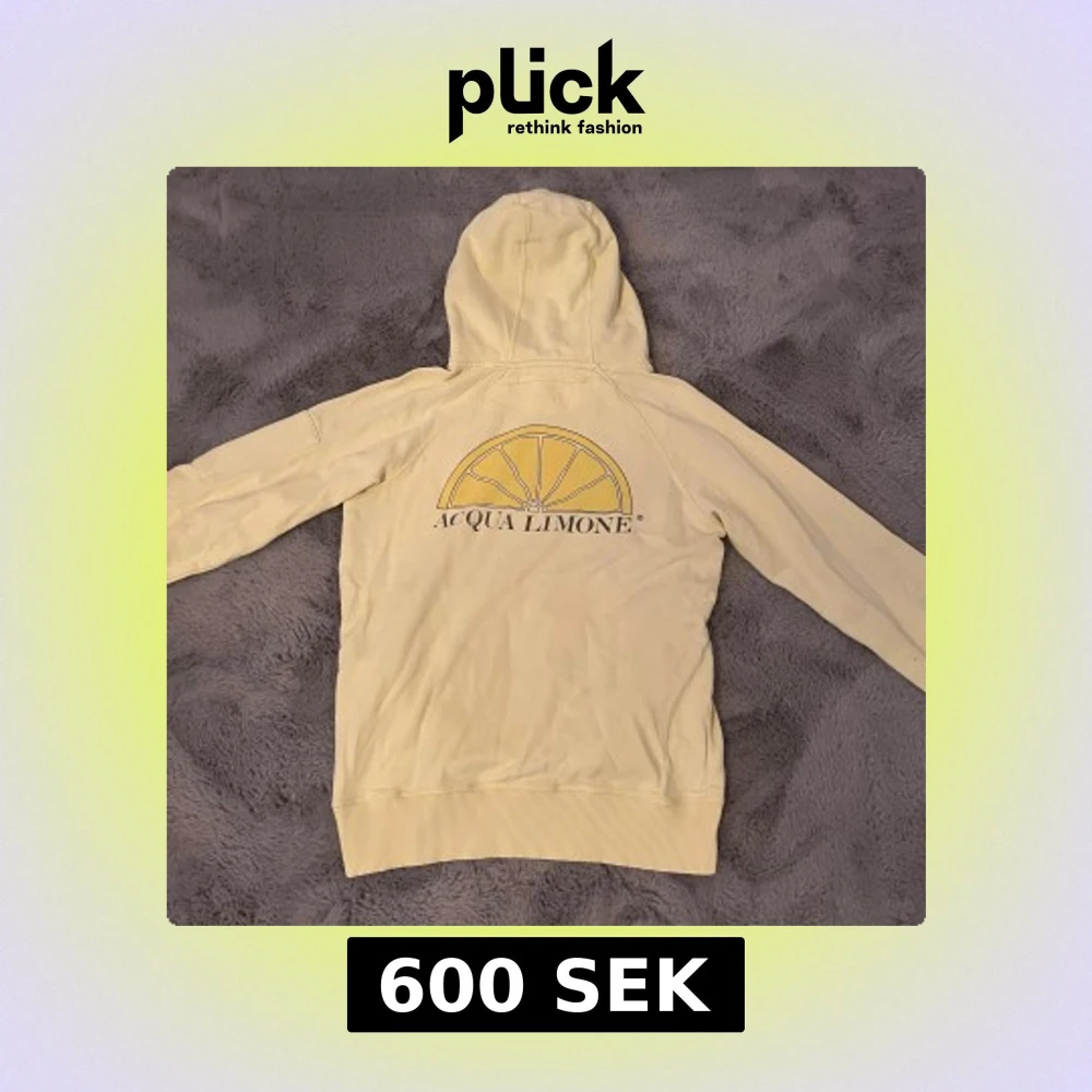 Snygg ljusgul hoodie från Acqua Limone i storlek S. Tröjan har huva med snörning, ribbade muddar och en dragkedja på ärmen. På ryggen finns ett stort citrontryck och logga, och på ärmen står märket tryckt. Perfekt för chill dagar.