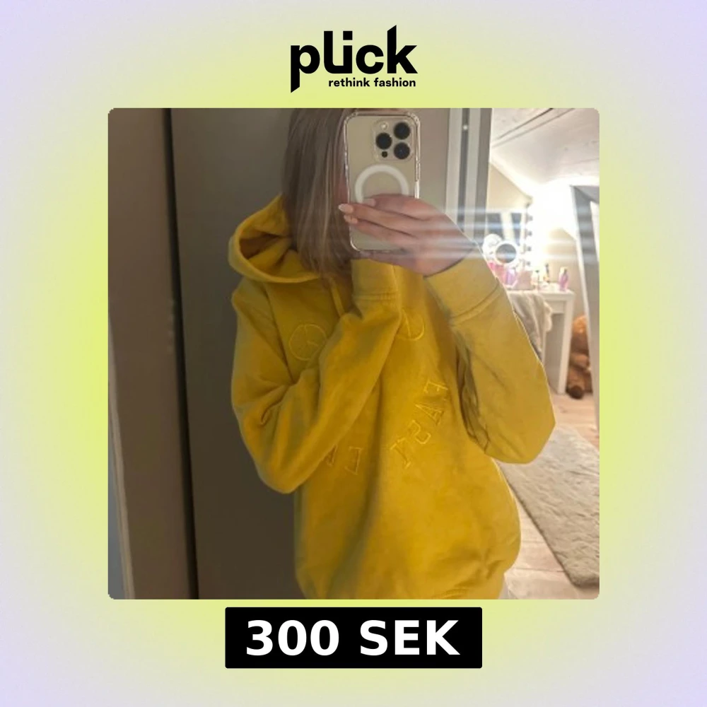 Gul hoodie från Ganni med broderad text och peace-symboler framtill. Tröjan har huva med snörning och långa ärmar. Såå snygg!😍💞 #sthlmstil #ganni #gult #valentino