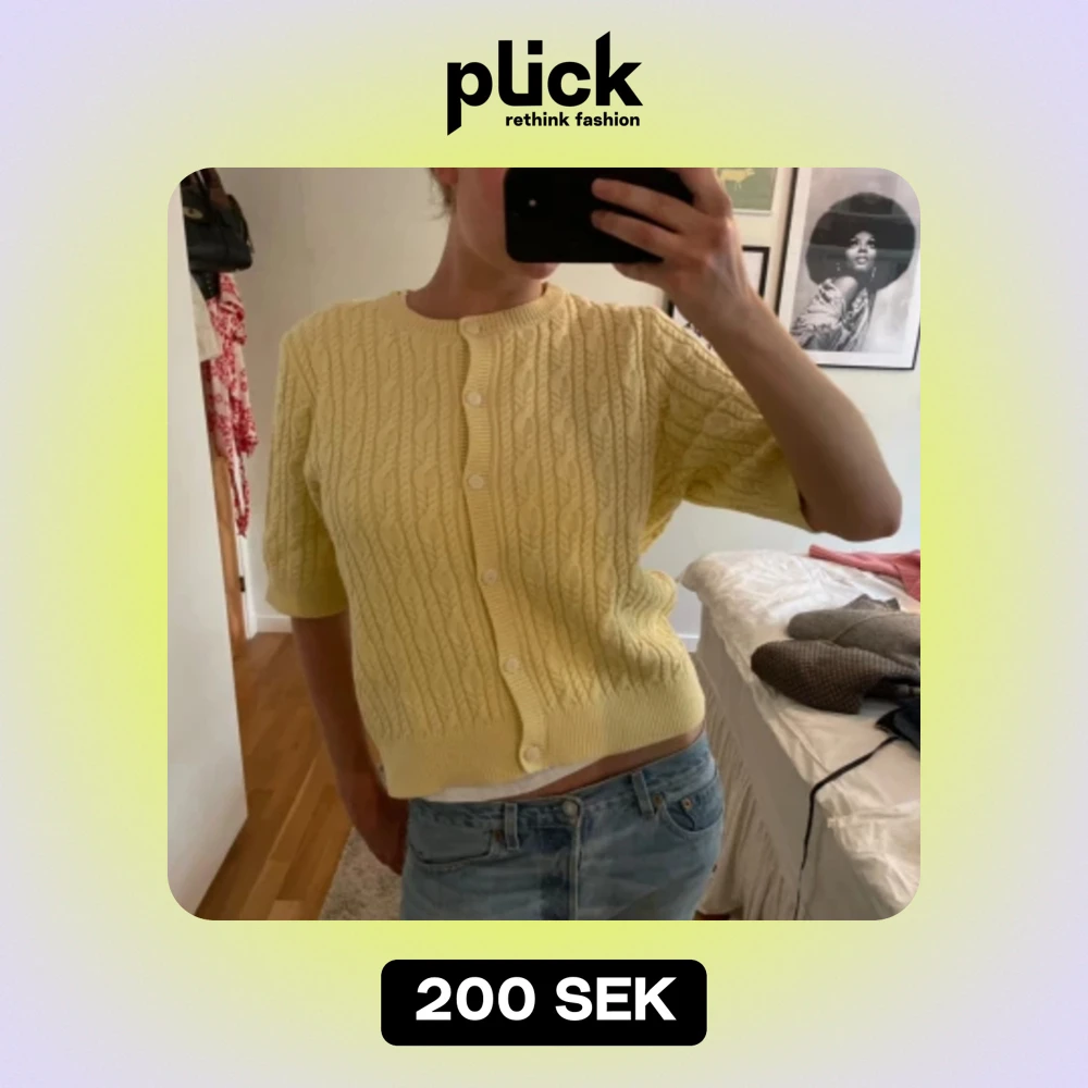Så söt gul stickad kofta i storlek XL men skulle säga att den sitter som en M😊