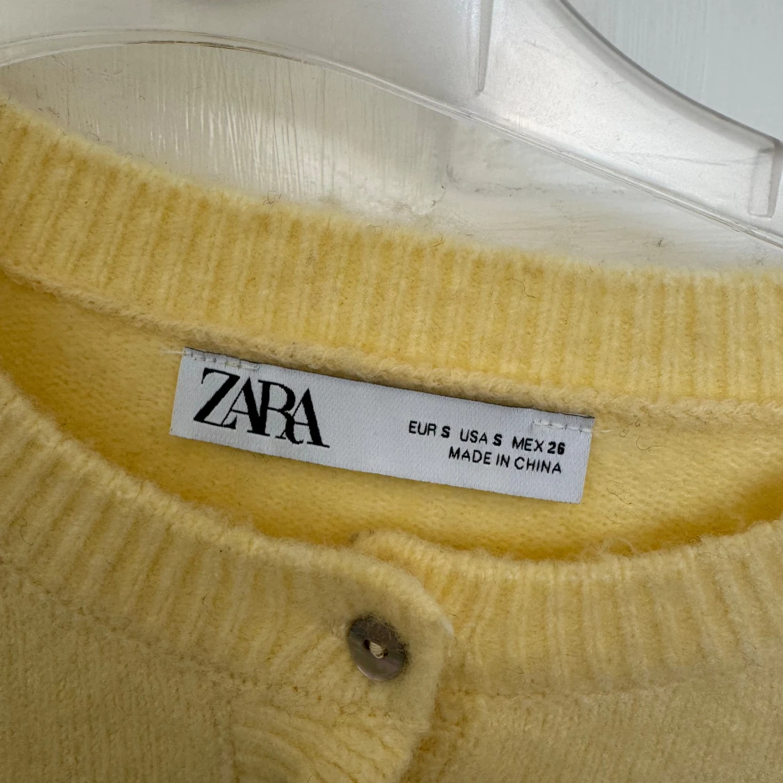 Supersöt ljusgul kofta från Zara med volangkant längs nederdelen och ärmsluten.