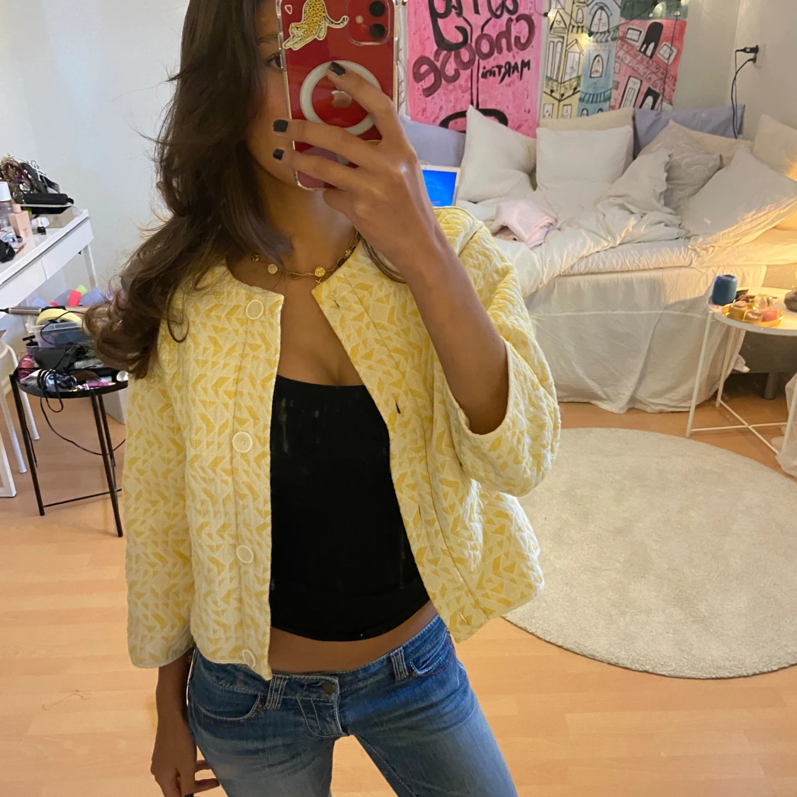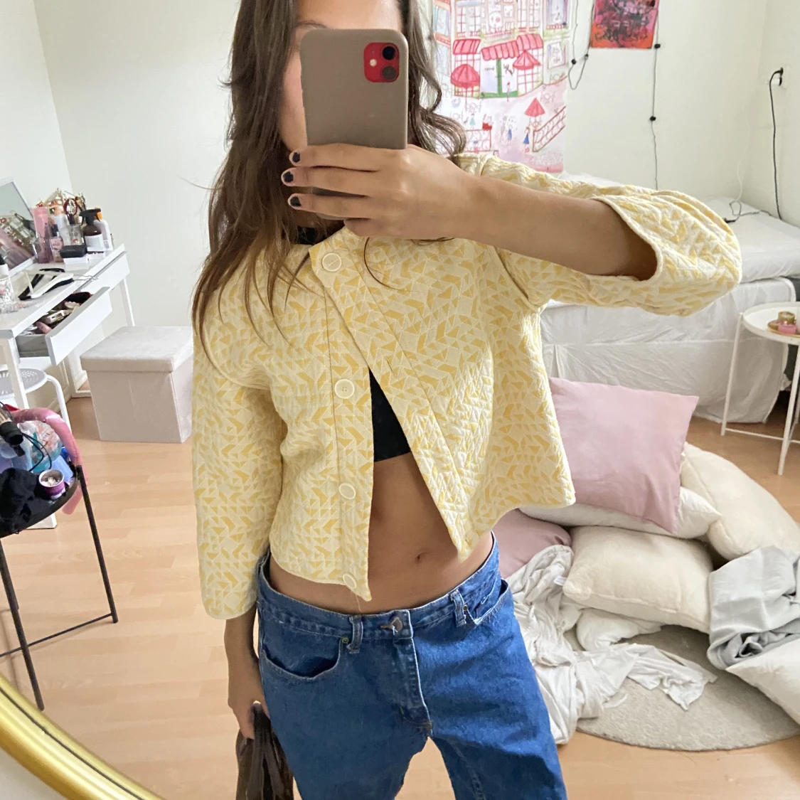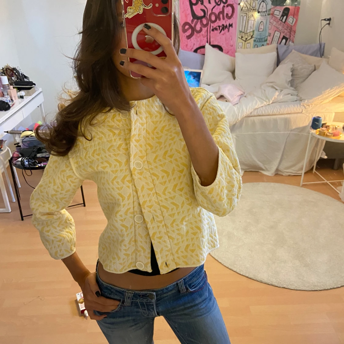 En gul kofta från barnavdelningen passar som kofta med trekvarts armar