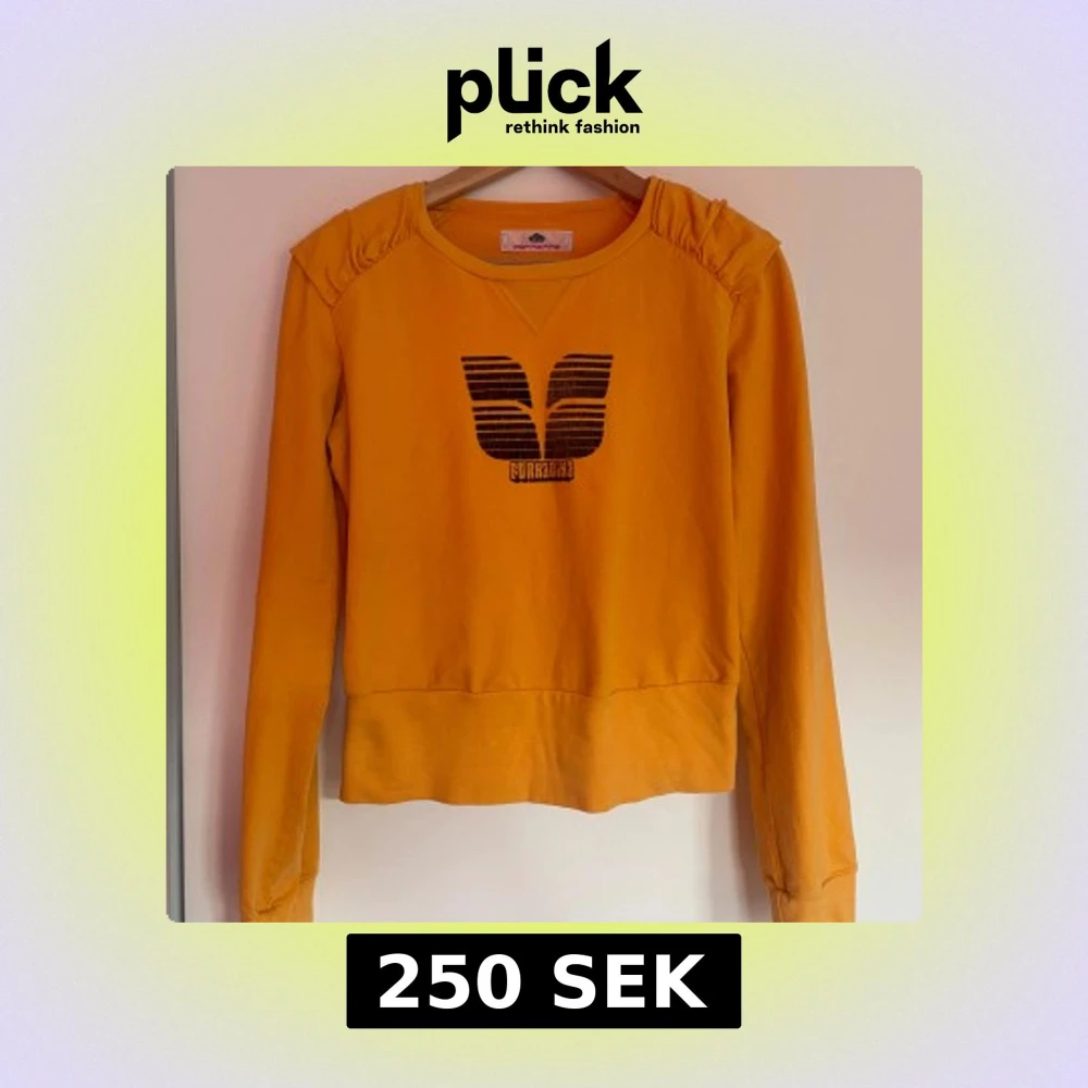 Säljer en snygg gul långärmad tröja från Fornarina med ett svart tryck på framsidan. Tröjan har rynkade detaljer vid axlarna och en rund halsringning. Mycket sparsamt använd! ☺️