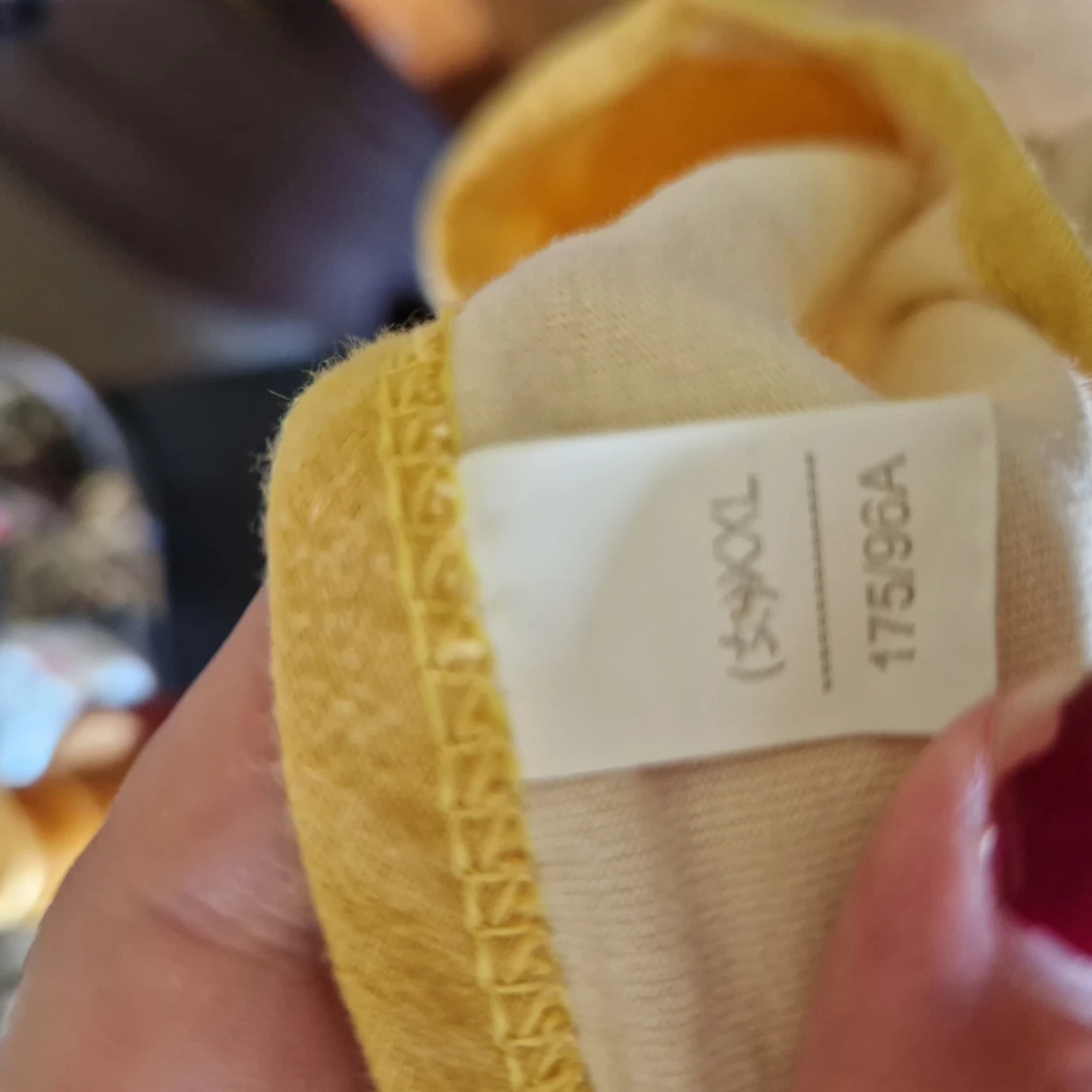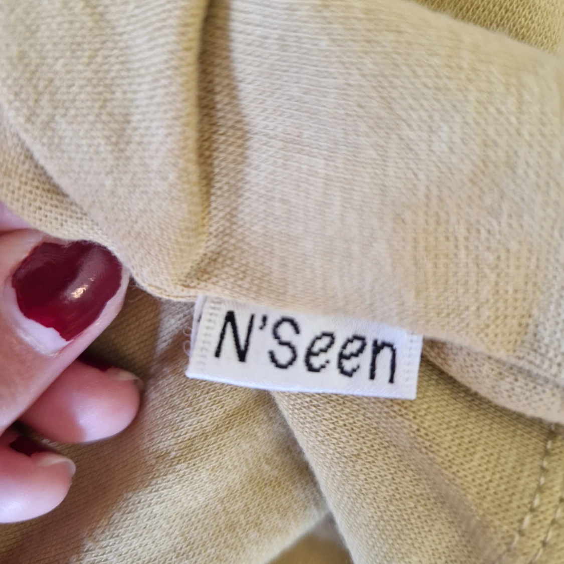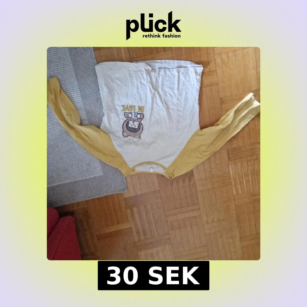 Långärmad tröja från N'Seen i storlek XXL. Tröjan är vit med gula ärmar och har ett gulligt tryck med texten 'IN LOVE' och en tecknad björn på bröstet. Perfekt för dig som gillar lekfulla och färgglada plagg.