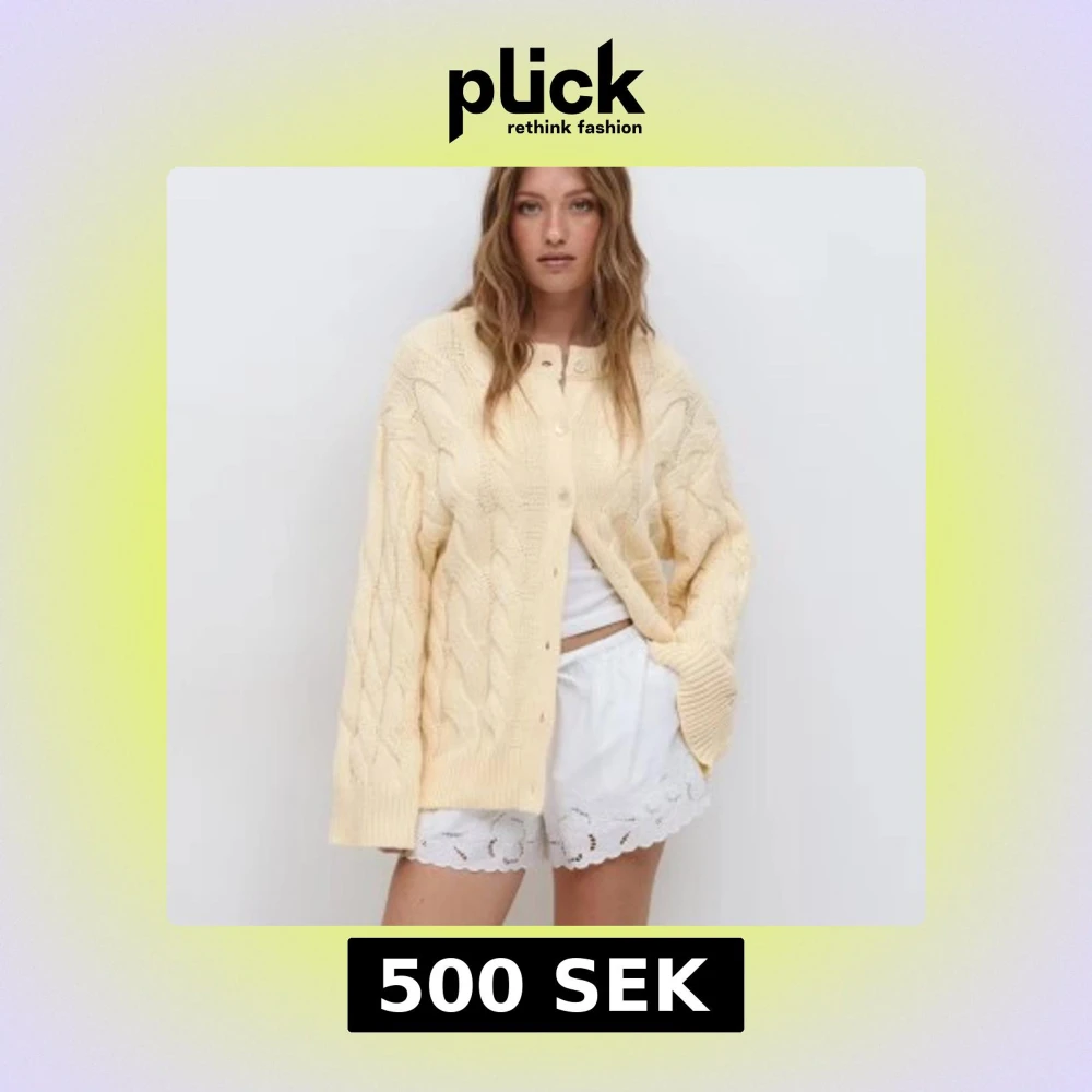 Säljer en ljusgul stickad kofta från Gina Tricot. Använd 2 ggr storlek S
