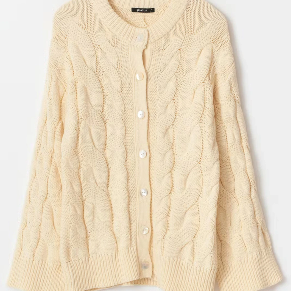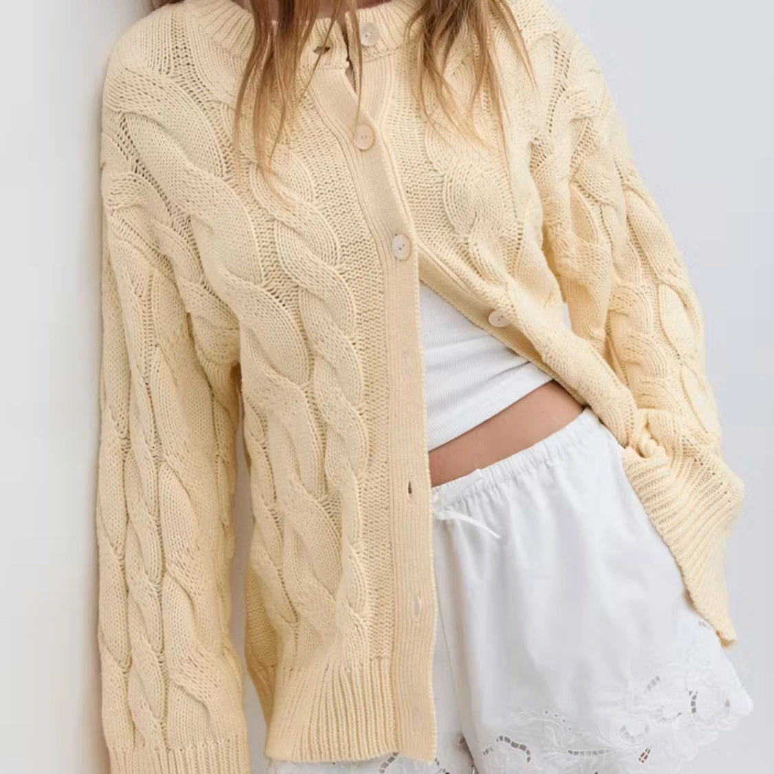 Gul stickad kabelstickad kofta från Gina Tricot