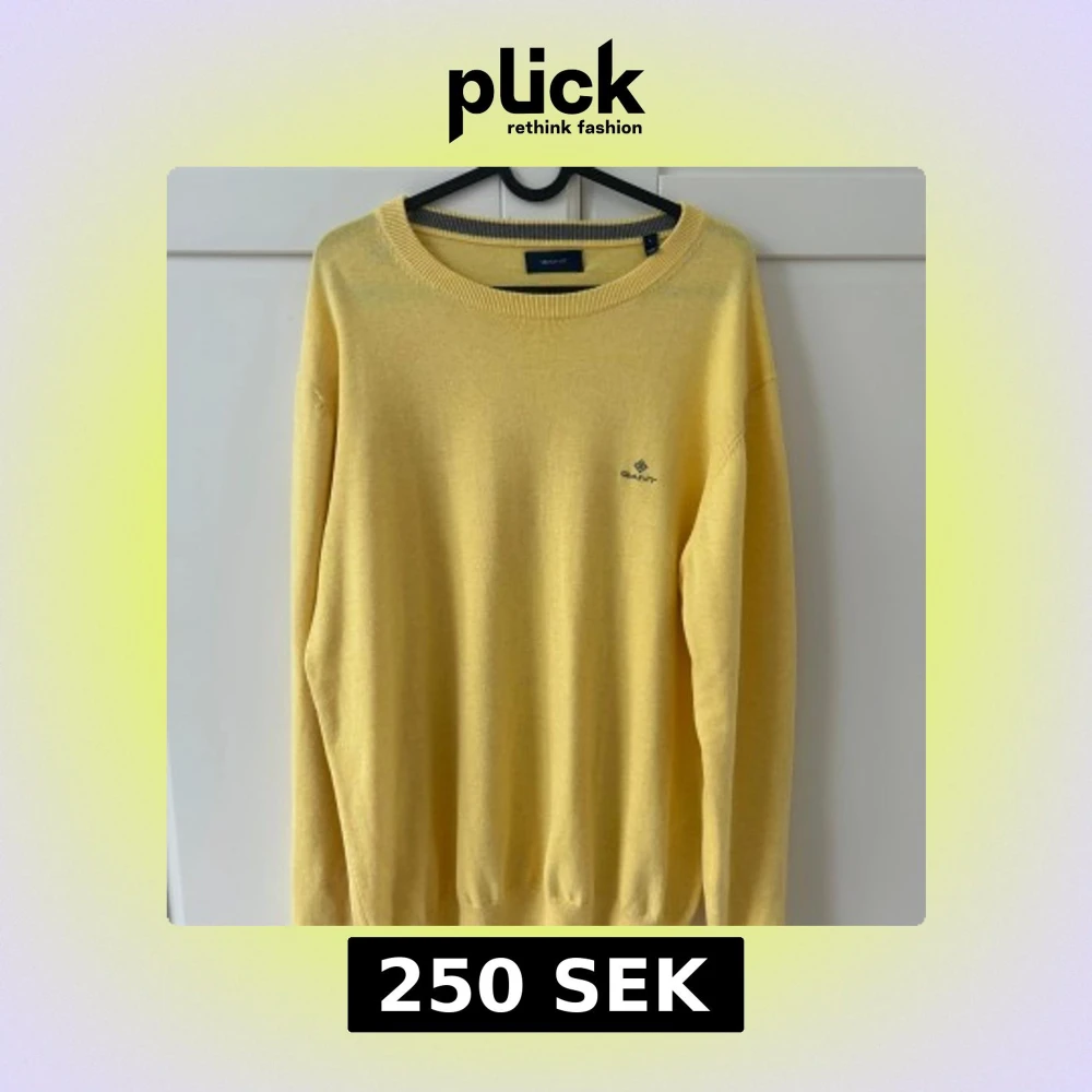 Fräsch gul stickad tröja från GANT i storlek L. Tröjan har rund halsringning med ribbad kant och diskret GANT-logga broderad på bröstet. Mjuk och lätt kvalitet som passar perfekt till vår och sommar. Långa ärmar och klassisk passform.