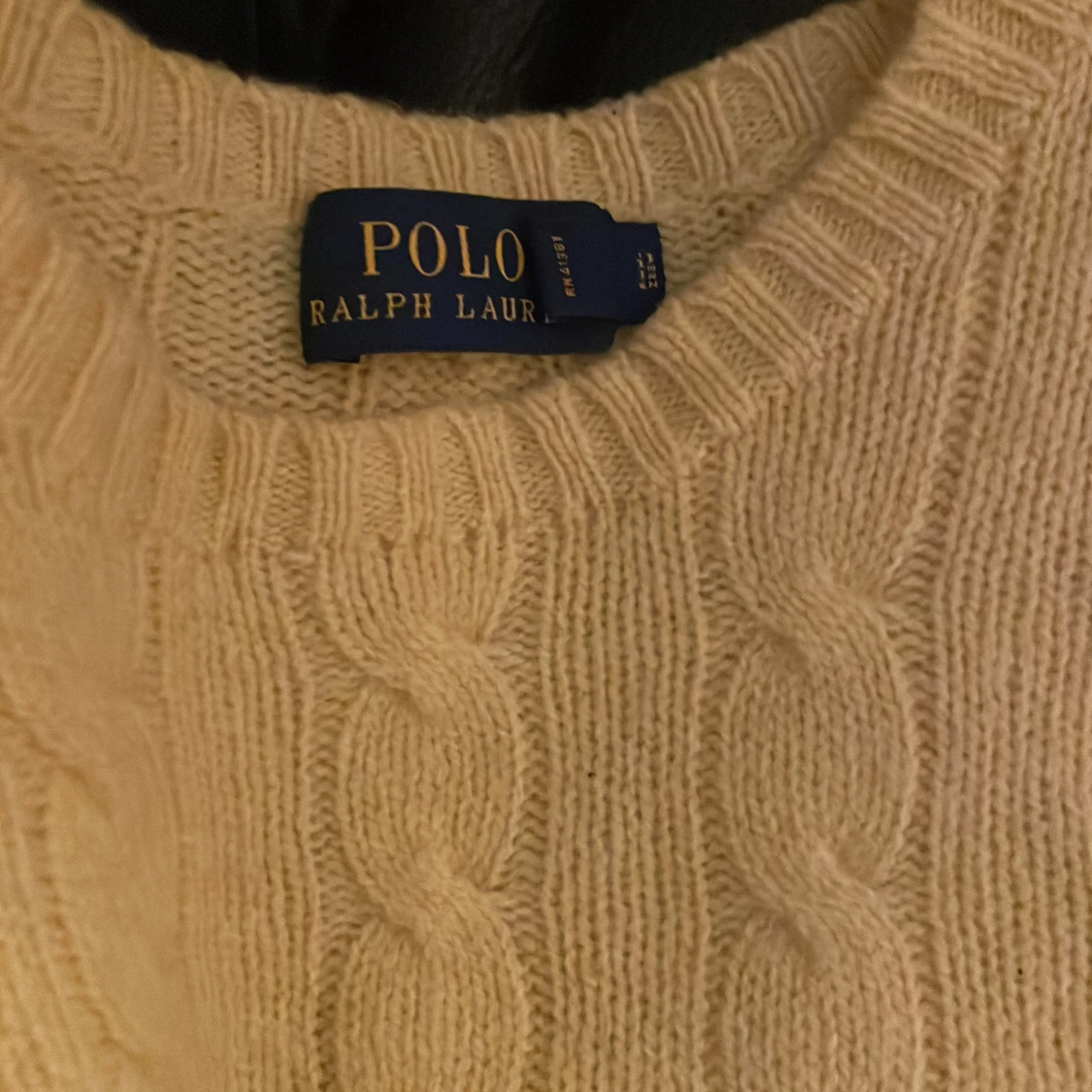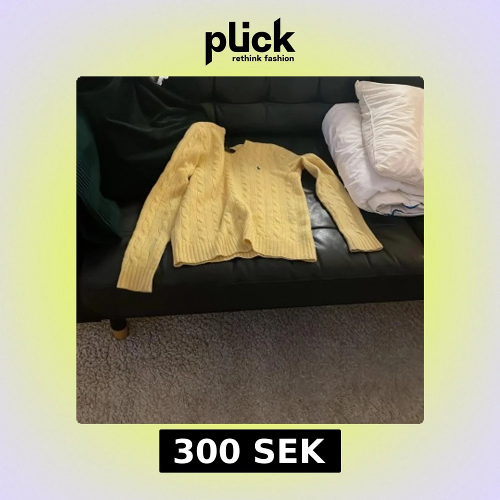 Säljer en snygg gul stickad tröja från Ralph Lauren. Tröjan har ett klassiskt flätmönster och långa ärmar. Perfekt för att hålla sig varm och stilren under kyligare dagar. Passar bra till både jeans och kjol. Pris kan sänkas vid snabb affär