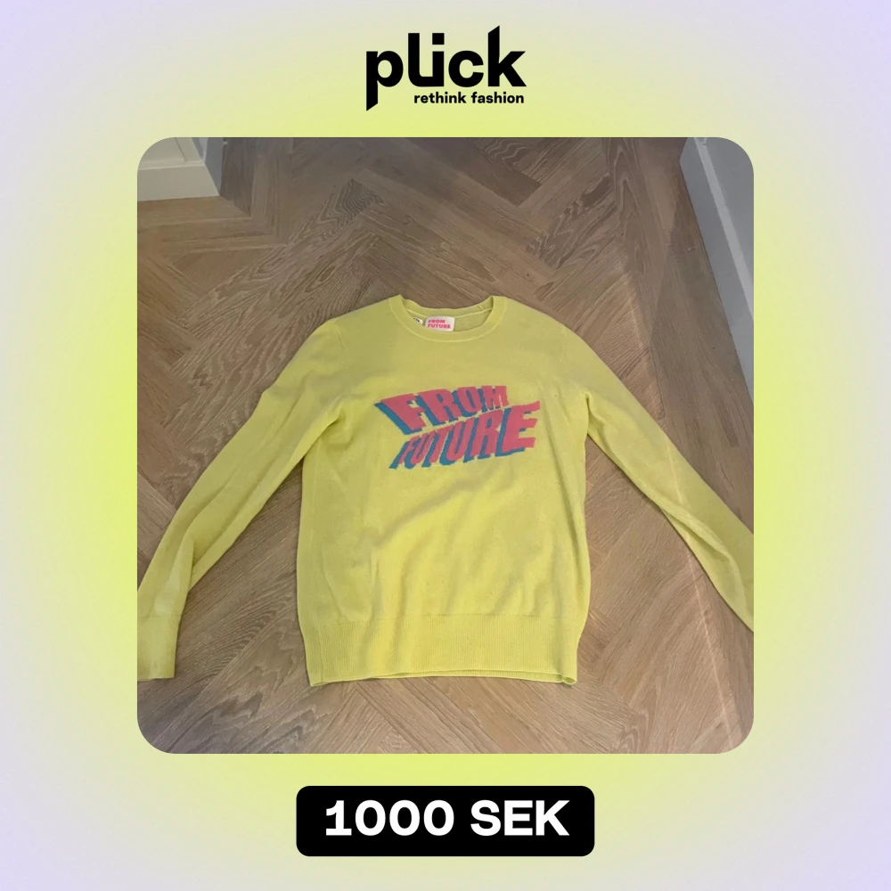 Säljer en supercool gul tröja från From Future med ett färgglatt tryck på framsidan. Tröjan är i ett mjukt material och har långa ärmar. Perfekt för att liva upp garderoben med lite färg! 💛