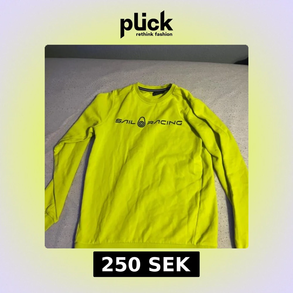 Säljer en gul tröja från Sail Racing med långärmad design. Tröjan har en rund halsringning och ett tryck med märkesloggan på framsidan. Perfekt för en sportig look! (Tröjan har en liten svart färgfläck som inte syns så mycket. Därför säljer jag den) storlek 160 barnstorlek.