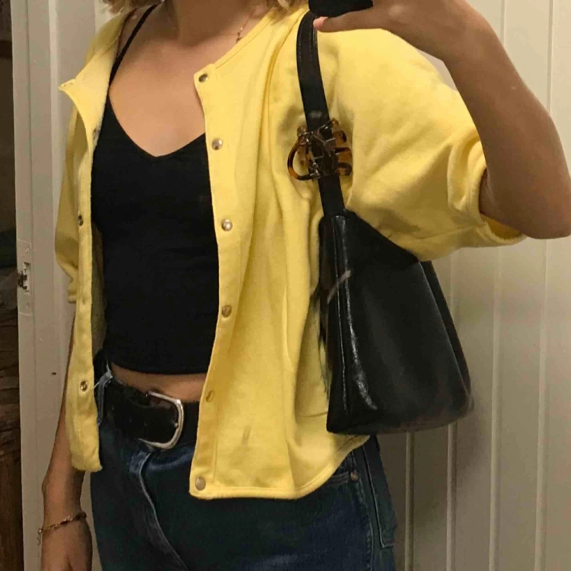 Så fin gul kofta som tyvärr inte används tillräckligt! Knappen allra längst ner och en knapp i mitten går inte att knäppa :)