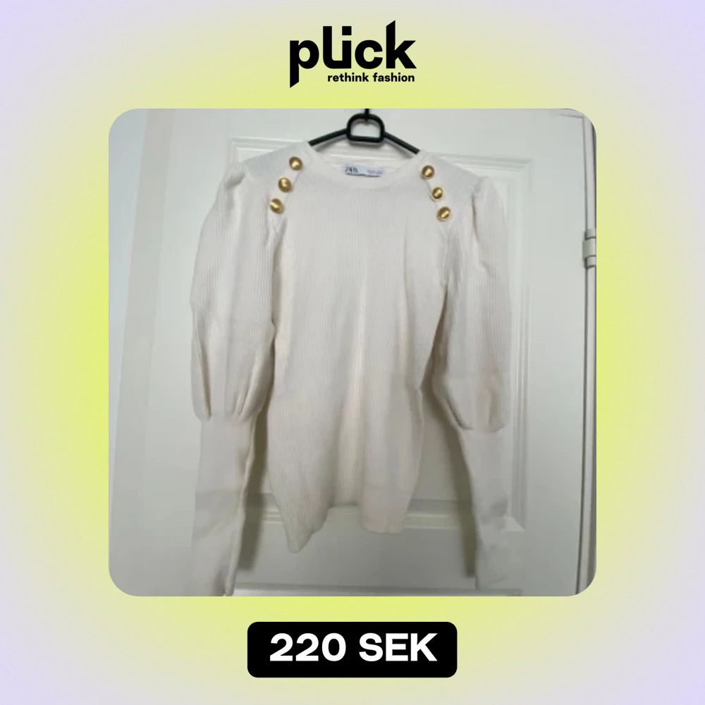Jättefin vit tröja från Zara med guldiga knappar. Tröjan är i fint skick, använd Max 2-3 gånger. Tröjan är I storlek L men liten i storleken så skulle säga den är som M.