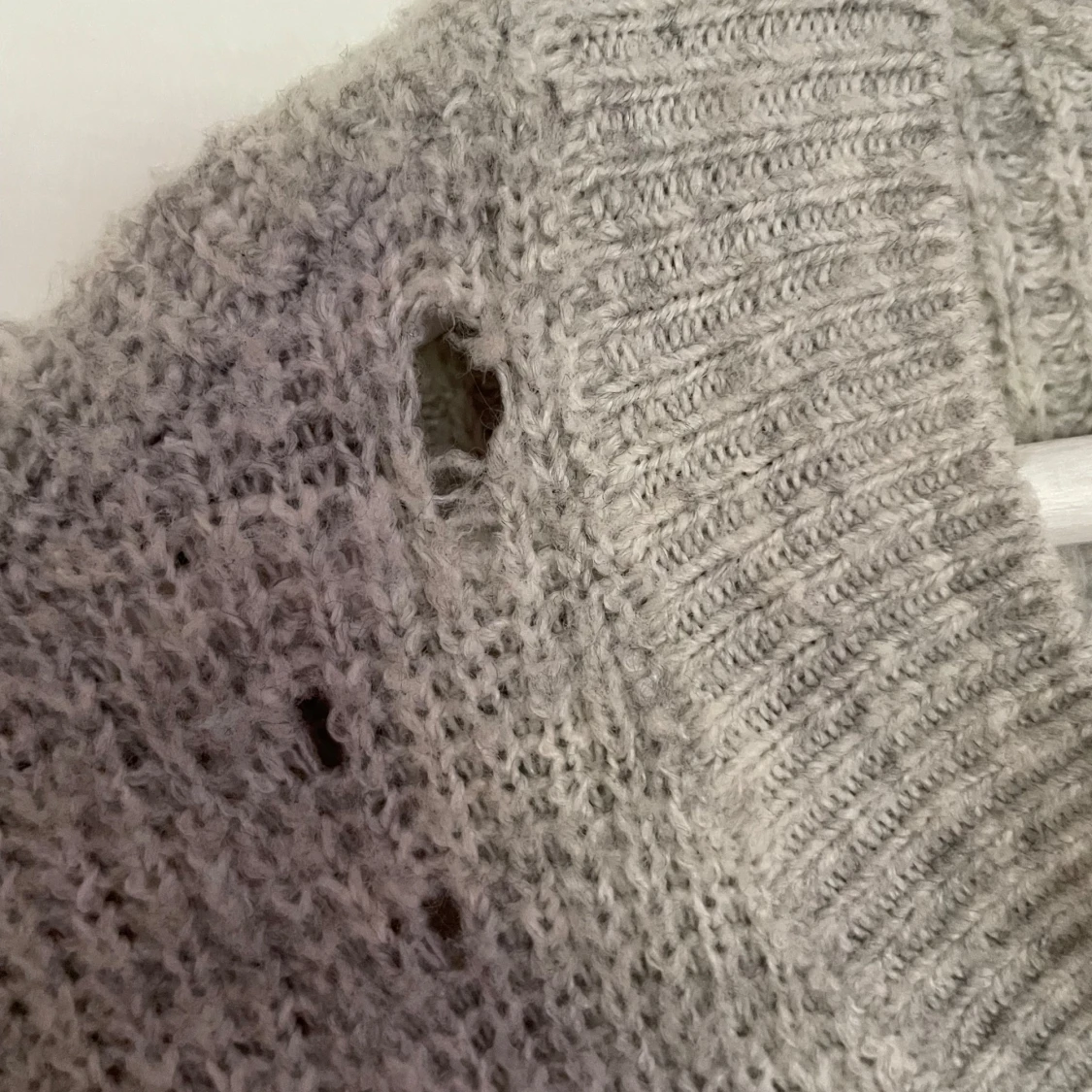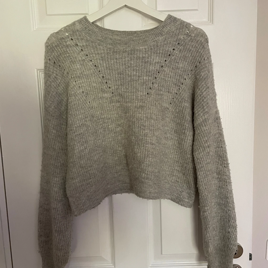 Mysig ljusgrå stickad tröja från Kappahl med rund hals och diskreta hålmönster framtill. Tröjan har lång ärm och en loose passform som ger en chill vibe. Perfekt för kalla dagar när du vill vara både bekväm och snygg.