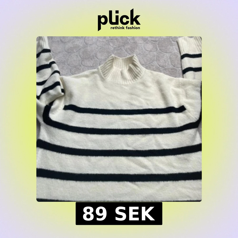 Säljer en vit polotröja från GU i storlek S med svarta horisontella ränder. Tröjan har en ribbad hög krage och långa ärmar. Materialet är mjukt och stickat, perfekt för kyliga dagar. Köpt i Japan, storlek S