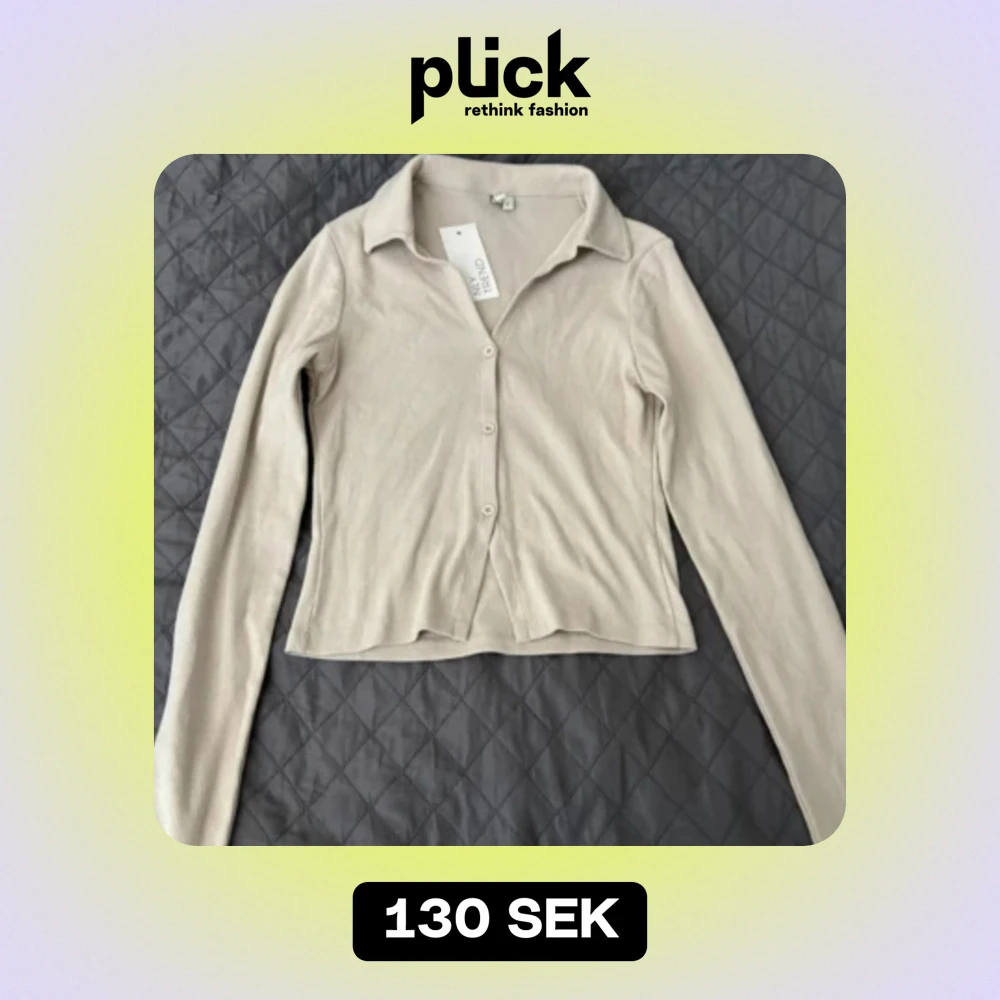 En oanvänd beige kofta från NLY Trend med långa ärmar och knappar framtill. Koftan har en ribbad struktur och en krage.💕
