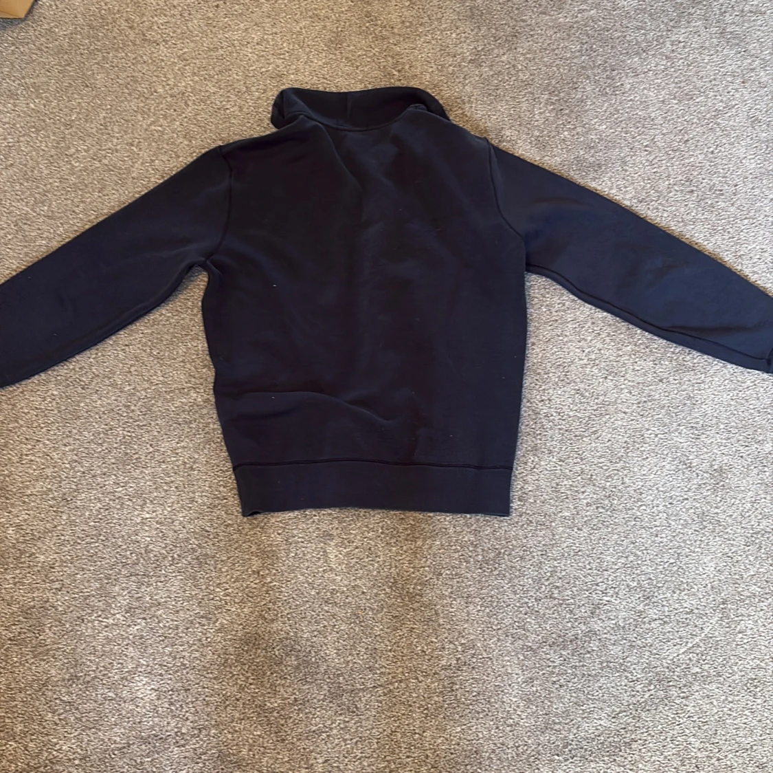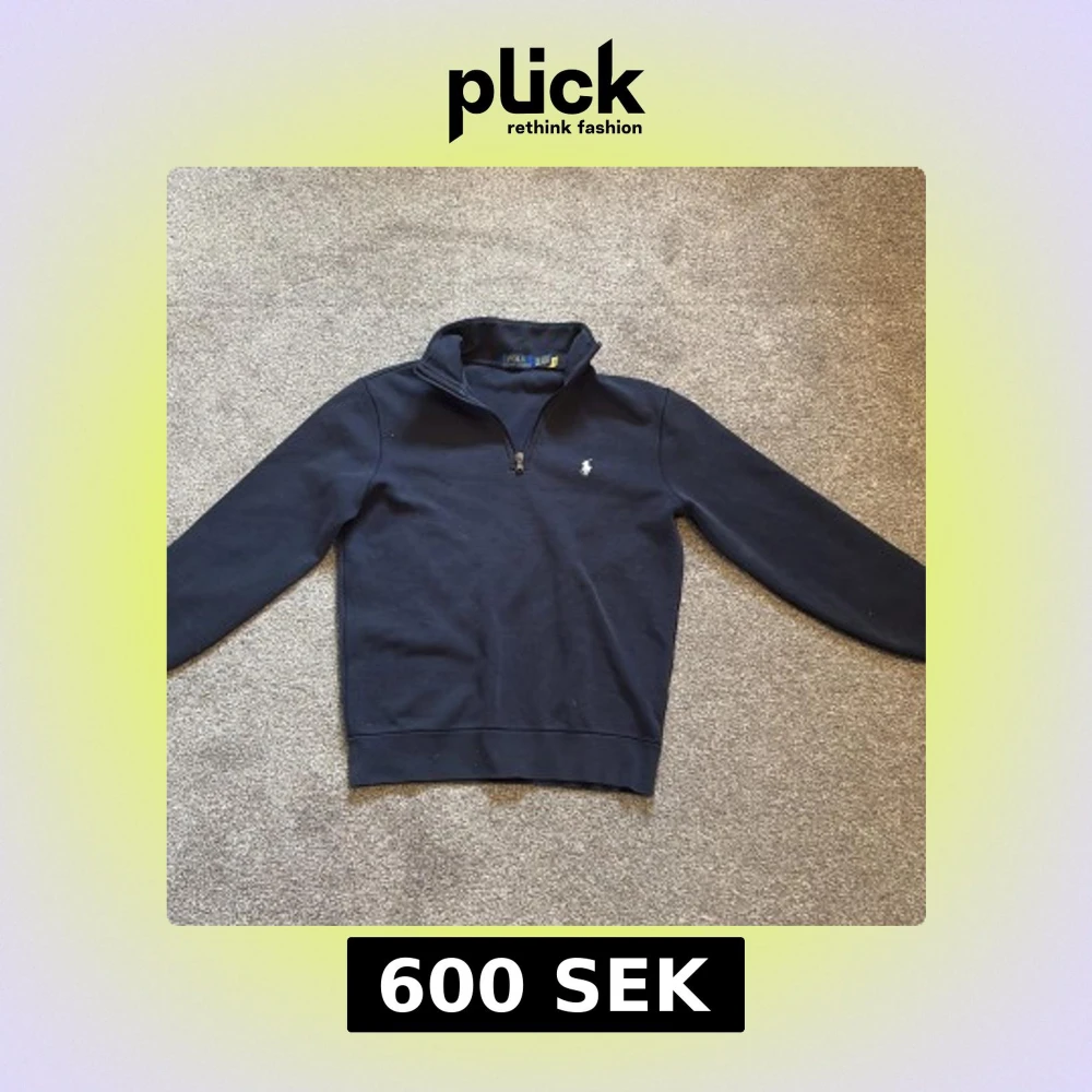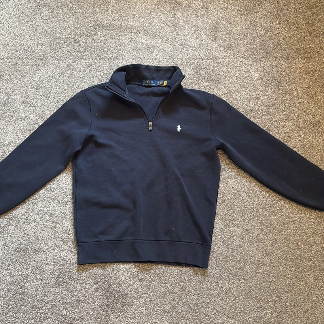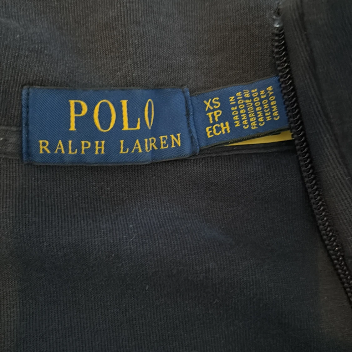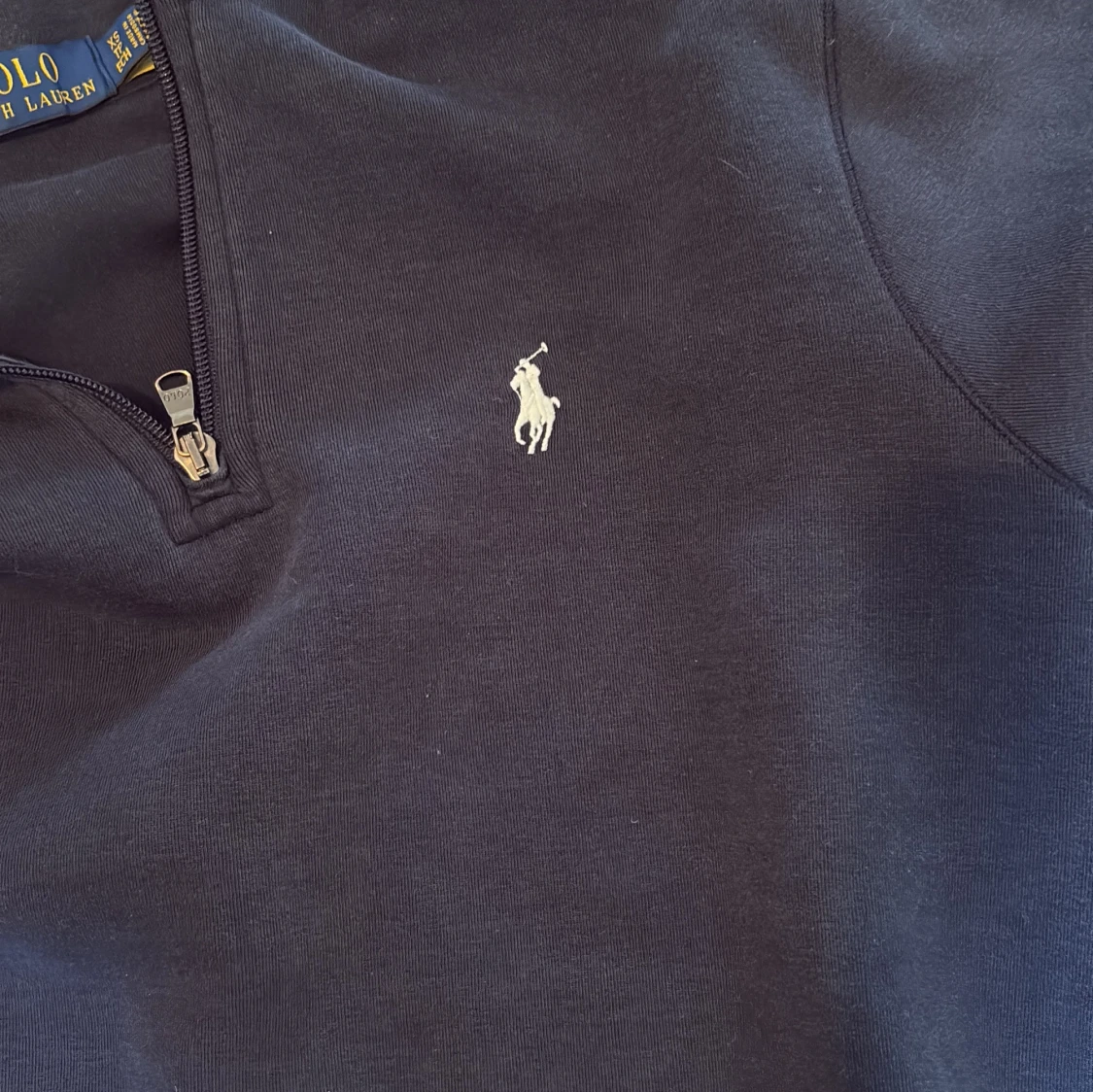 Snygg mörkblå tröja från Polo Ralph Lauren med klassisk half zip och broderad logga på bröstet. Tröjan har långärmade ärmar och stårkrage, perfekt för dig som gillar stilren och enkel design. Materialet är mjukt och skönt, troligtvis bomull. Priset kan sänkas vid snabba affärer