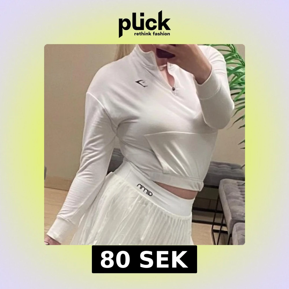Säljer en vit croppad hoodie från Gymshark med halv dragkedja och lång ärm och elastisk nederkant. Storlek S, stretchig funkar även som M🤍