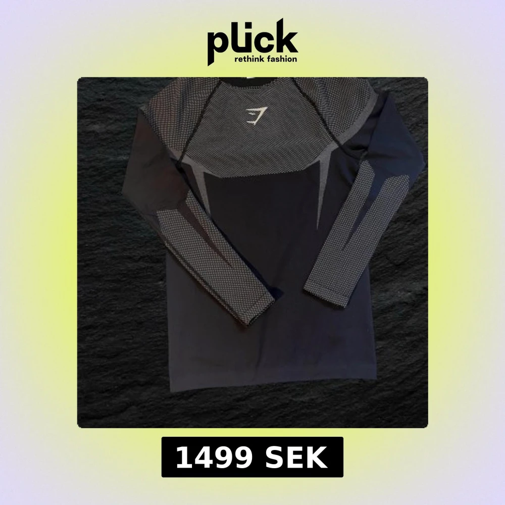 Svart långärmad träningströja från Gymshark med grått mönster och logga på bröstet. Helt ny oanvänd (fick precis hem den men den var förliten)