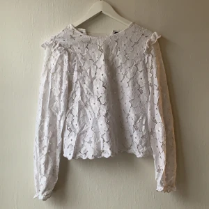 Vit spetsig tröja med snörning i ryggen. Från h&m storlek 38. Säljes för 30kr+ frakt.
