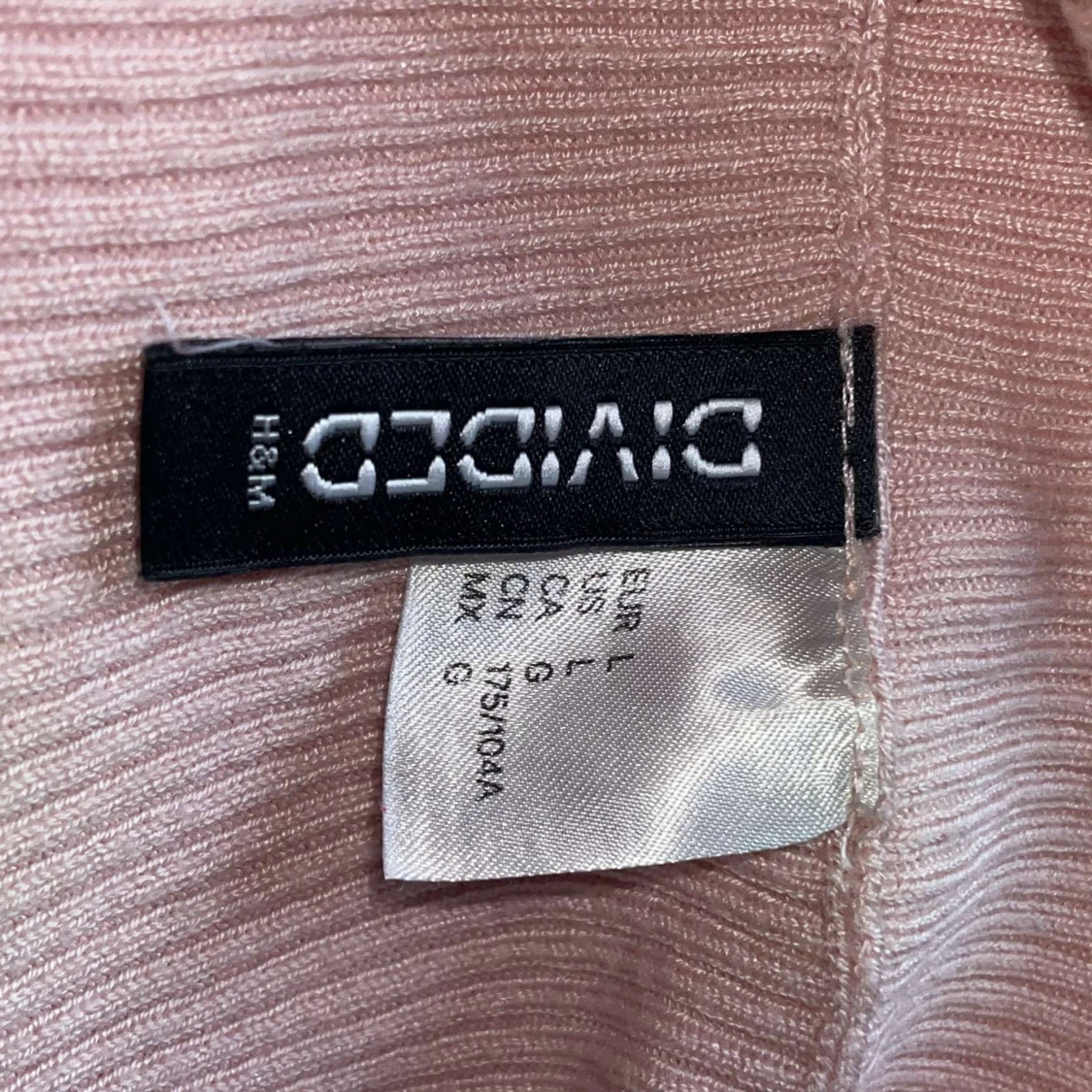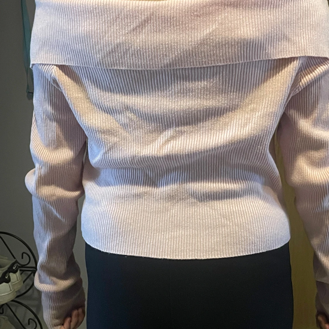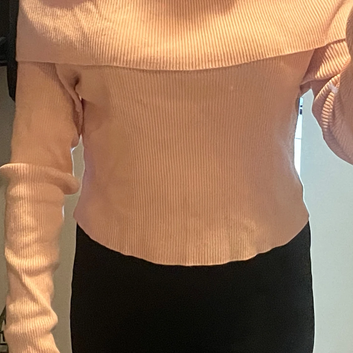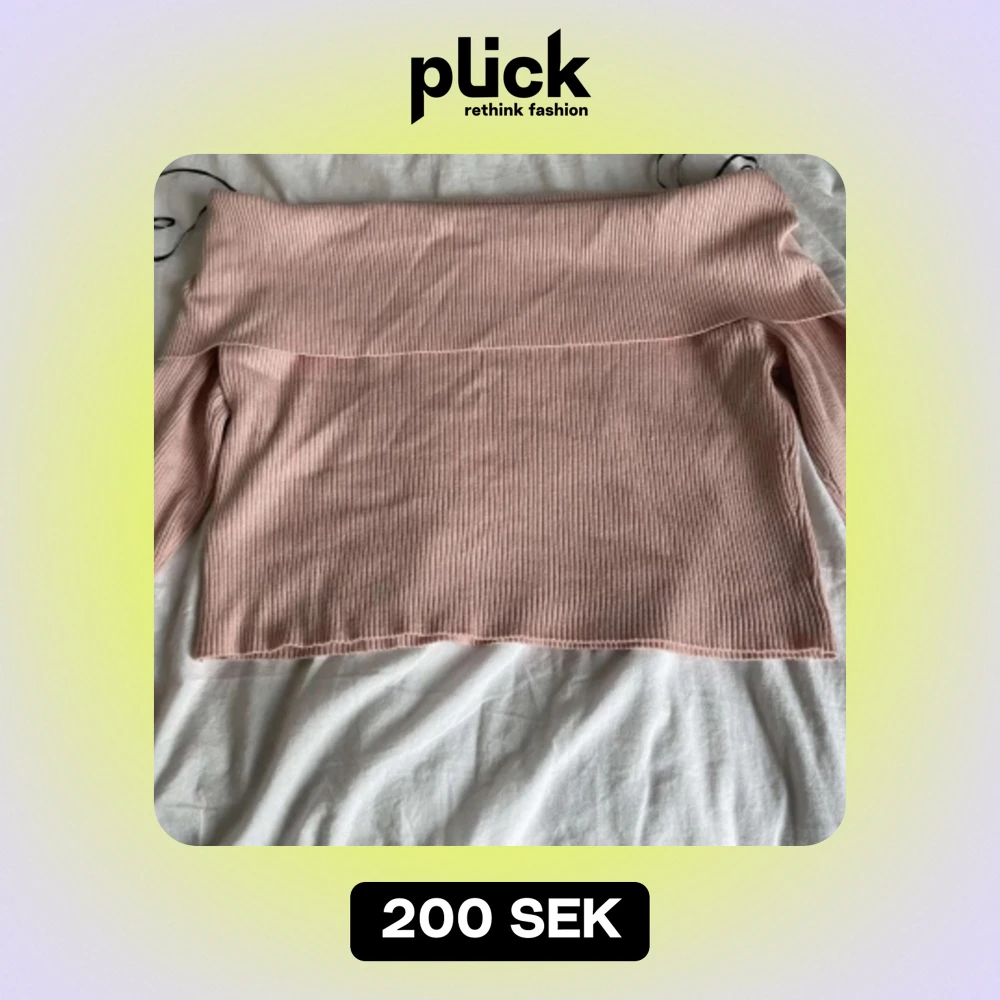 En ljus rosa axellös tröja med storleken L och använd 4 gånger och nytvättad. (Du måste vila ner den)