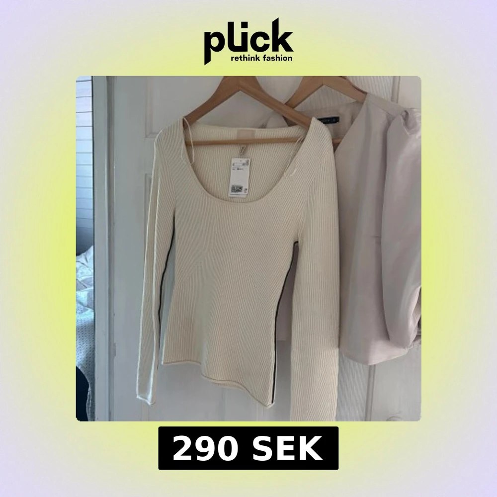 Säljer en ribbad offwhite långärmad topp från H&M, svarta sömmar på ärmar och sidan, aldrig använd