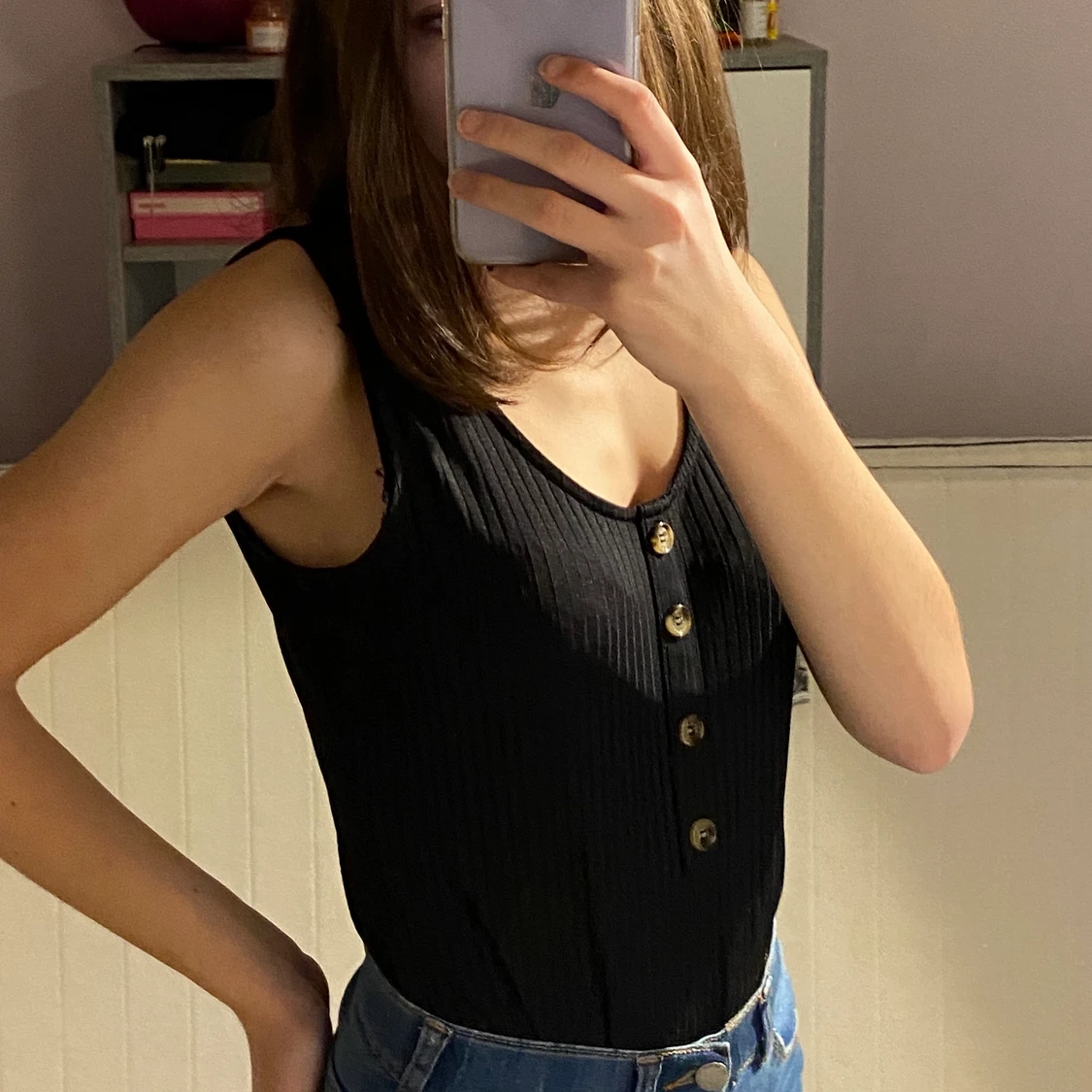 En svart body från HM med fina dekorations knappar. Haft ett tag men använt kanske 1 gång eftersom den är lite för stor för mig.