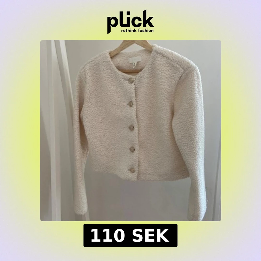 Supermjuk och fluffig teddyjacka från H&M i beige. Jackan har rund halsringning, långa ärmar och snygga silverfärgade knappar framtill. Perfekt för lager-på-lager och ger en chill vibe till din outfit. Använd 1 gång