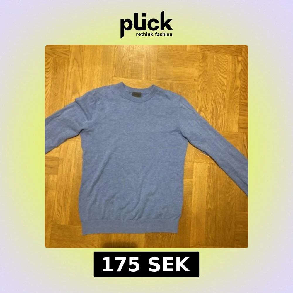 Säljer en stilren blå tröja från H&M i slim fit. Tröjan har långa ärmar och en rund halsringning med ribbade kanter. Perfekt för en avslappnad look.