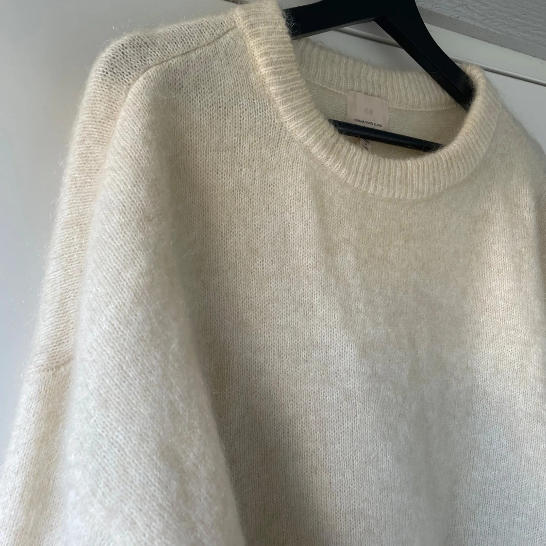 Cremefärgad mohair tröja från H&M köpt förra året. Inte mycket använd så i mycket bra skick. Storlek XS men den är översized så passar S. Köp direkt 750kr