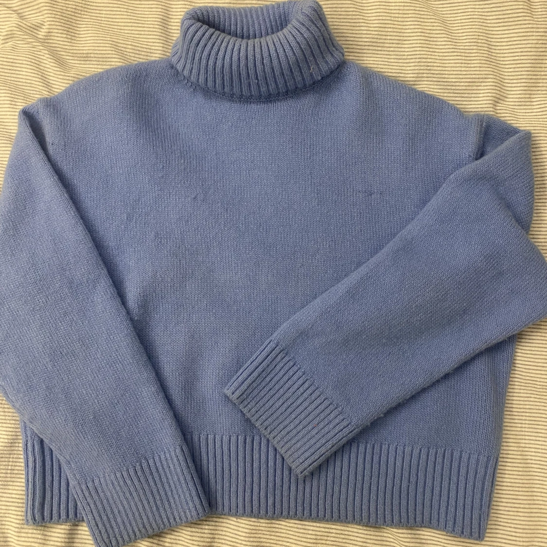 Stickad blå tröja från HM i väldigt bra skick knabbt använd i xs