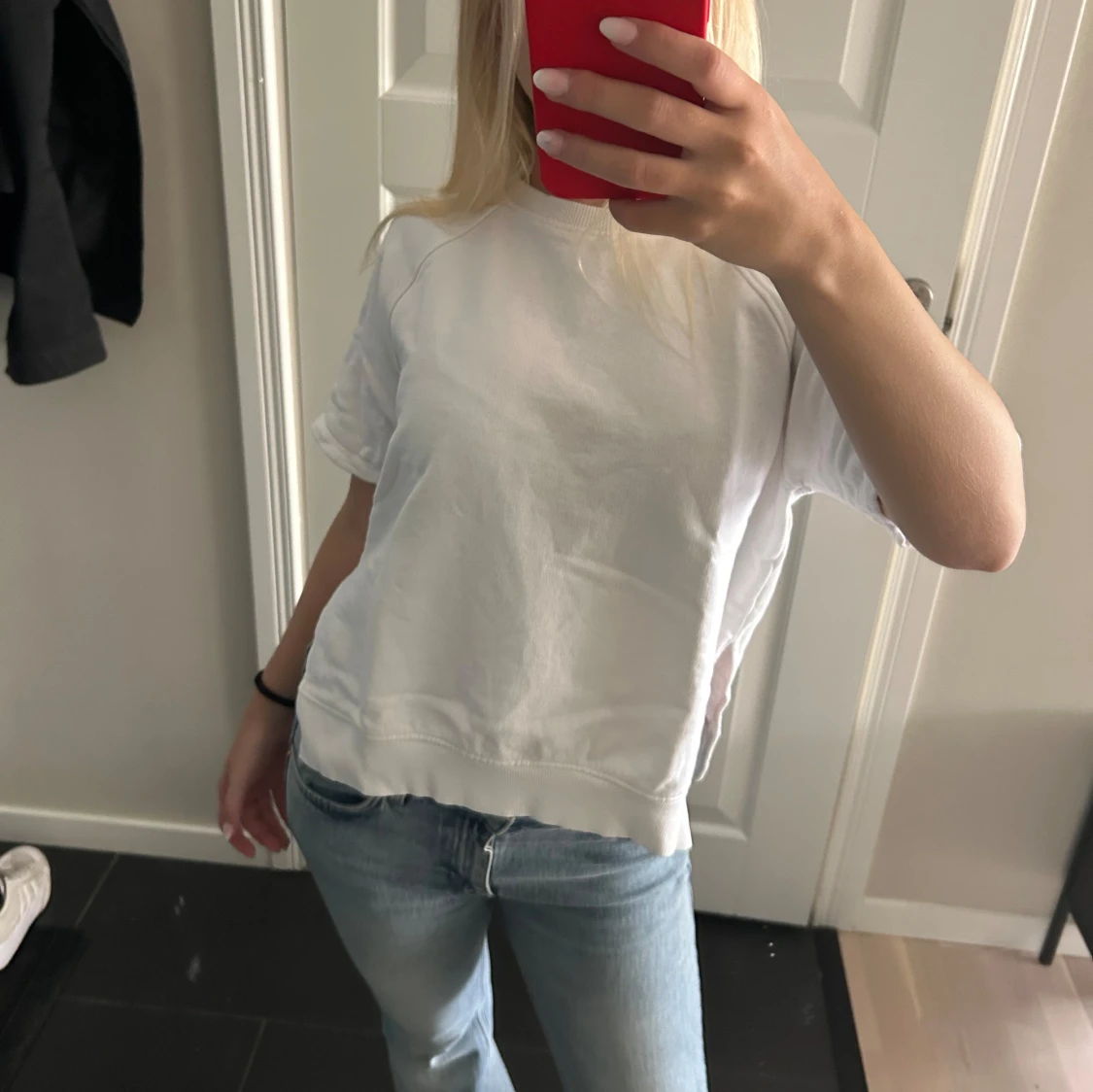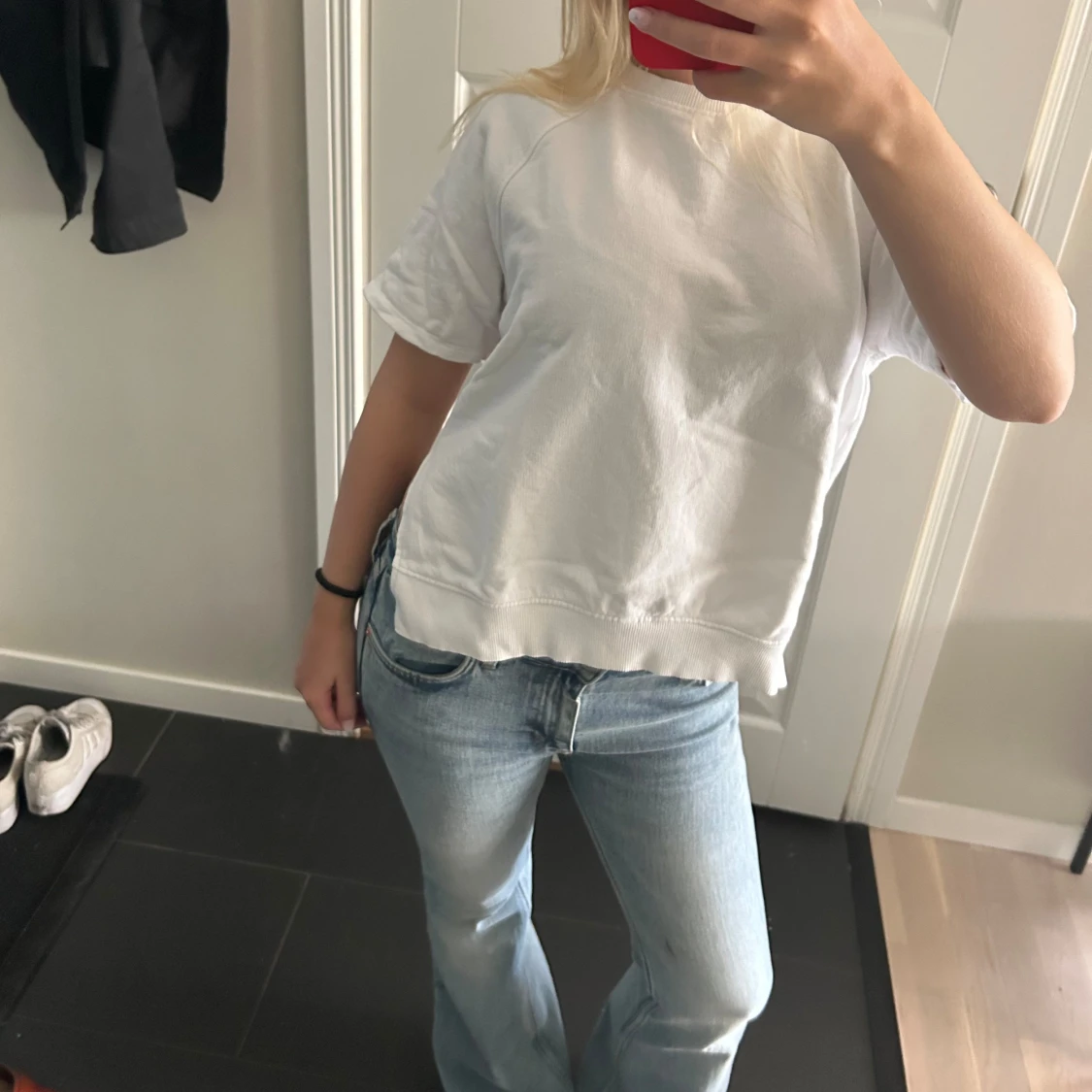 En så himla snygg vit sweatshirt från H&M, den har en slit på sidorna!!