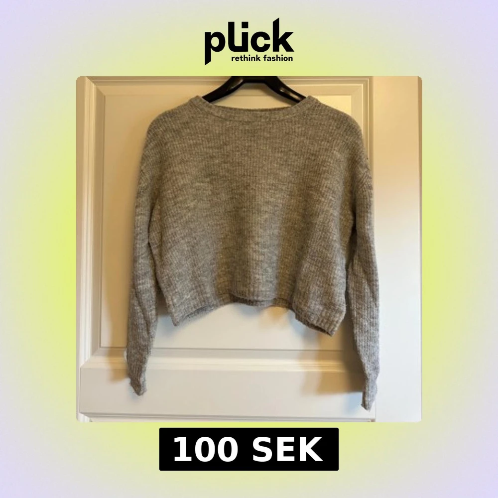 Mysig grå stickad tröja med croppad passform och långa ärmar. Tröjan har en enkel, ribbad struktur och är perfekt för lager-på-lager-stil under kyliga dagar. Passar dig som gillar en avslappnad och trendig look.