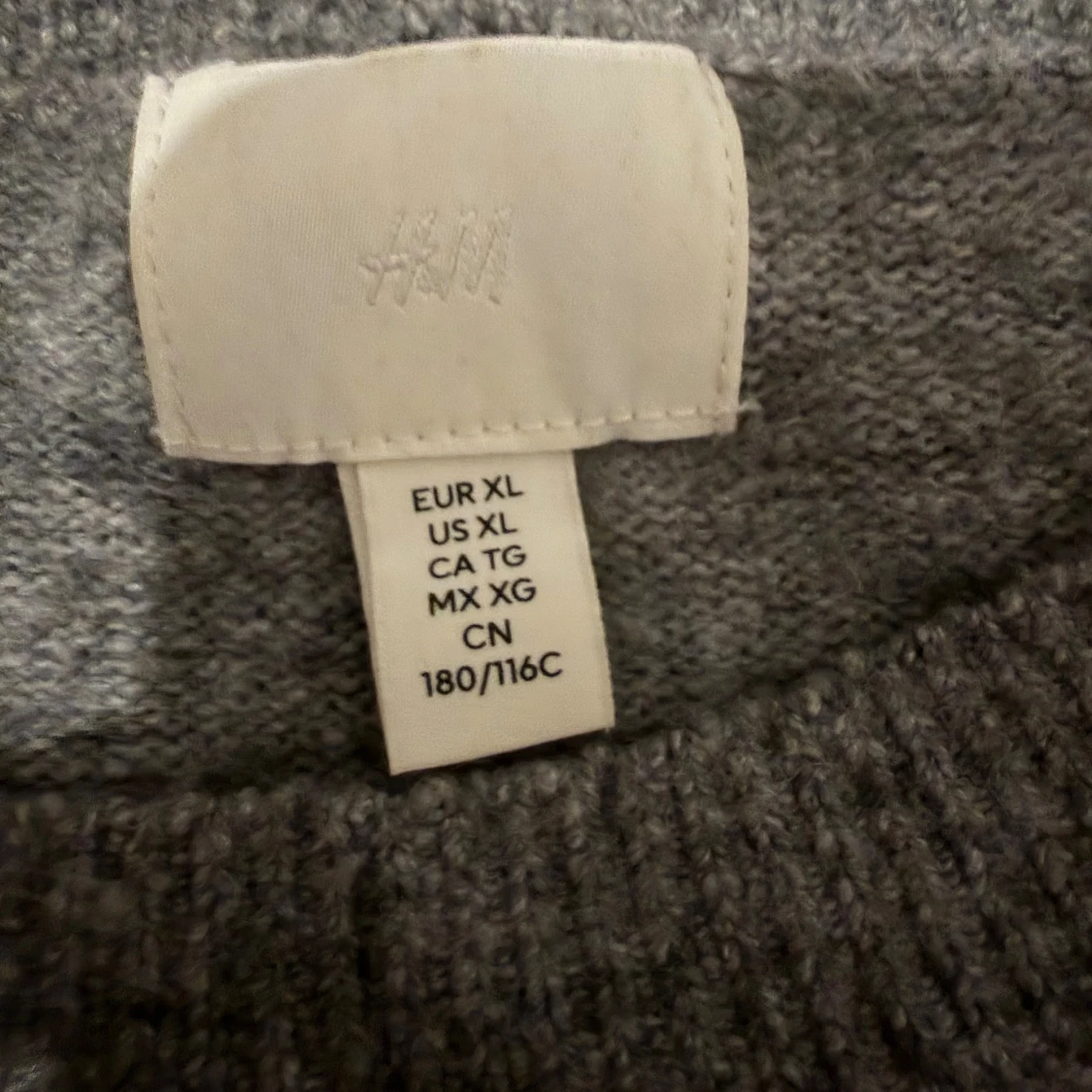 Mysig grå stickad tröja från H&M i storlek XL. Tröjan har rund halsringning, långa ärmar och breda ribbade muddar vid ärmslut och nederkant. Perfekt för lager-på-lager och chill dagar. Den är liten i st jag som är M passar mig, ärmarna är långa.
