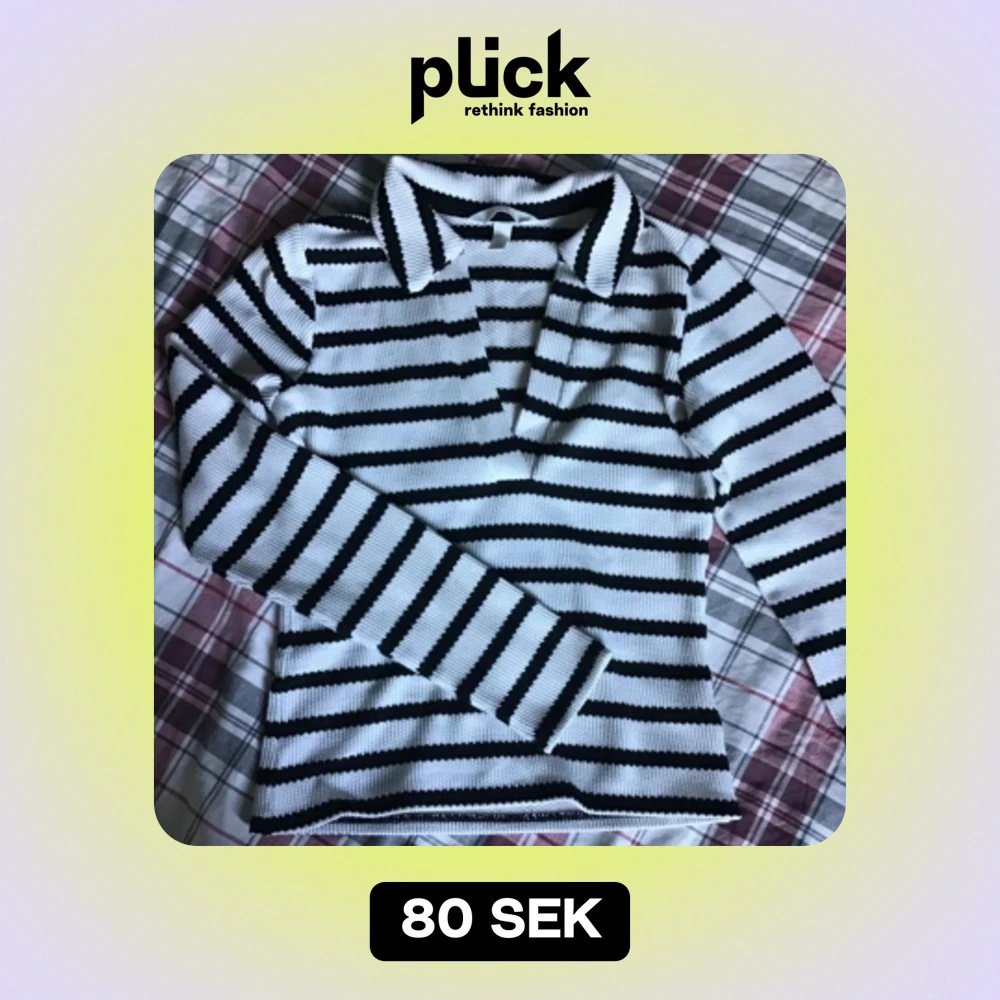 Randig svart off-white H&M tröja med krage. Tröjan har använts få gånger och är i väldigt bra skick.
