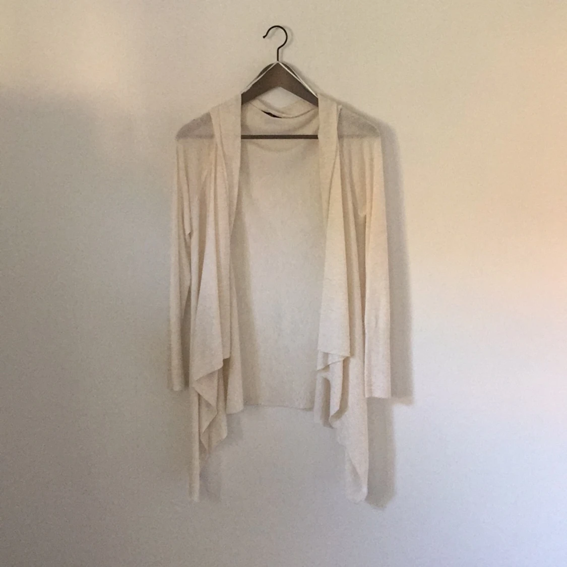Fin, naturvit cardigan från H&M. Använd en gång. 50% akryl, 50% viskos, lätt och skönt tyg. Fin till hösten!