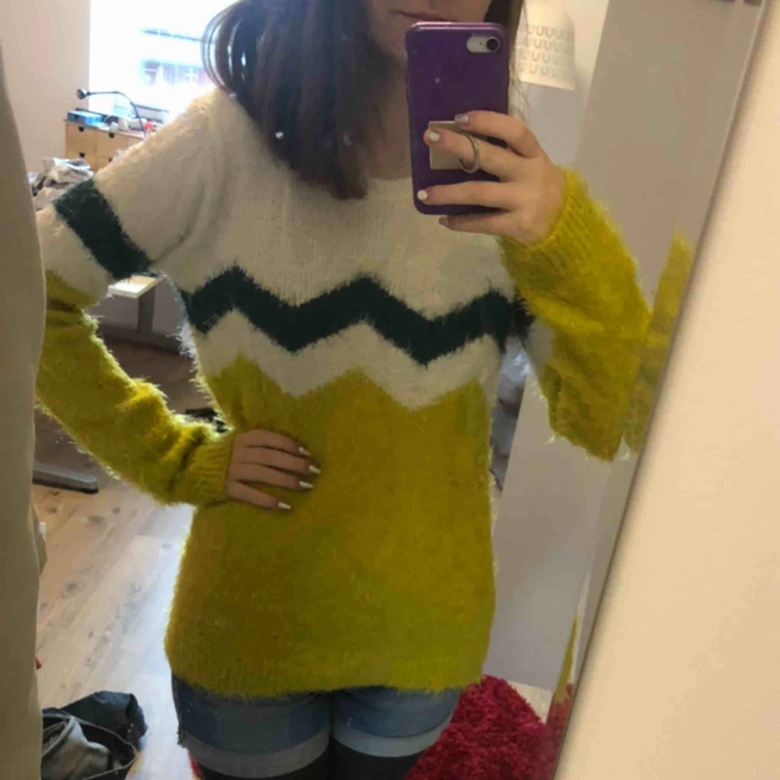 Jättefluffig långärmad tröja i storlek 170/S. Om ingen köper den gör jag om den till en kudde 😂