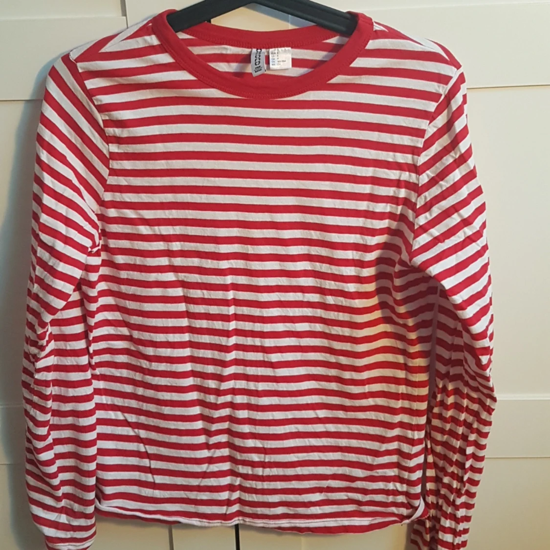 Säljer en röd randig långärmad tröja. Säljer då det inte är min stil. Köparen står för frakt.