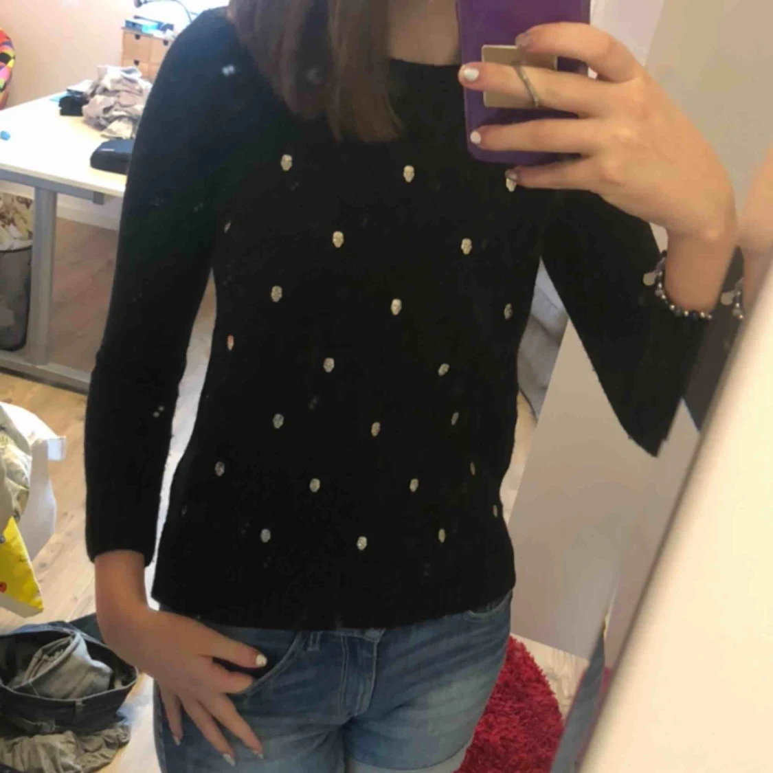 Häftig svart tröja med dödskalle nitar på. Aldrig använd.
