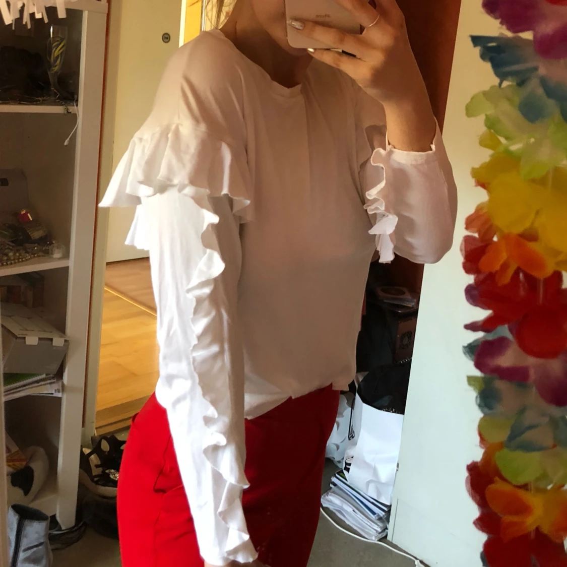 Vit topp med volanger, använd 1 gång!! Matchar till allt🌸