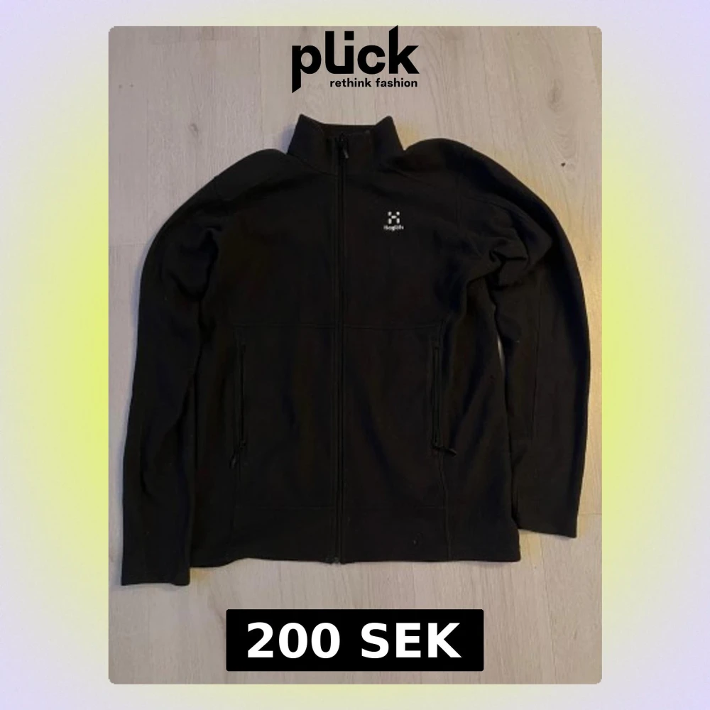 Svart fleecejacka från Haglöfs i storlek S. Jackan har hel dragkedja framtill, två sidofickor med dragkedja och hög krage. Perfekt för kyliga dagar och outdoor-aktiviteter. Stilren design med diskret Haglöfs-logga på bröstet. Pris kan diskuteras!