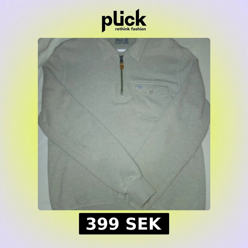 Snygg beige tröja från Morris med krage och half zip-dragkedja med läderdetalj. Bröstficka med knapp och ljusblå broderad logga. Mjuk bomullskvalitet och långa ärmar, perfekt för chill höst- och vårväder. I väldigt gott skick.