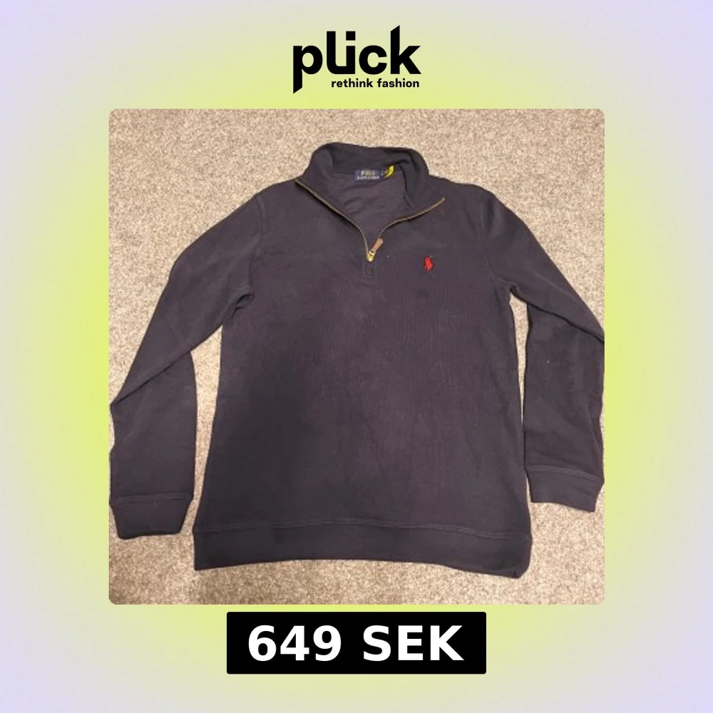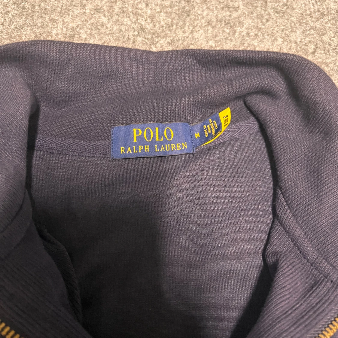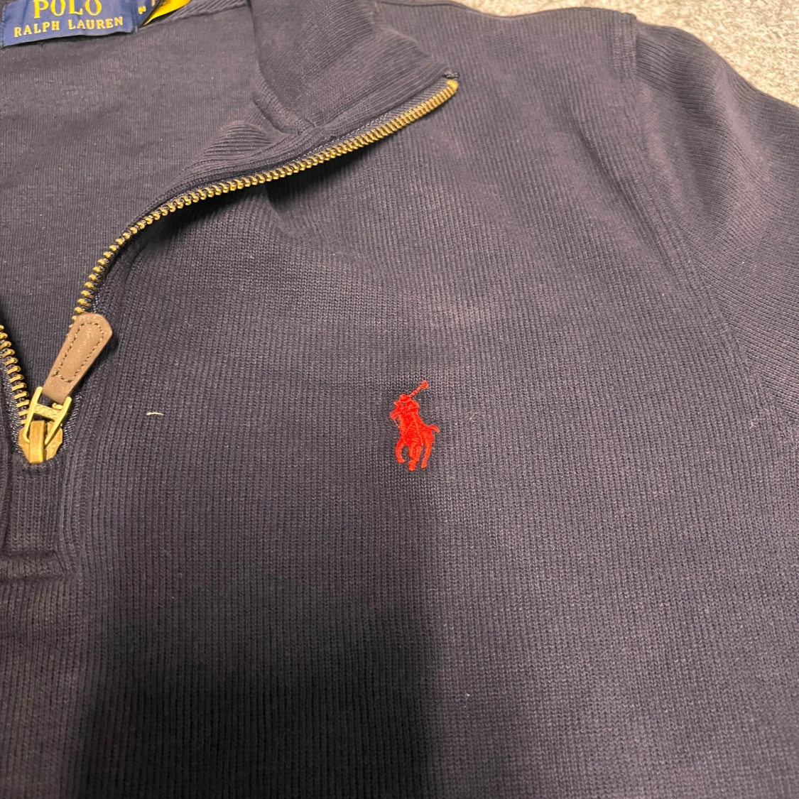 Mörkblå långärmad tröja från Polo Ralph Lauren med klassisk röd broderad logga på bröstet. Tröjan har en snygg half zip-dragkedja med läderdetalj och är tillverkad i mjuk bomull. Perfekt för lager-på-lager och chill stil.